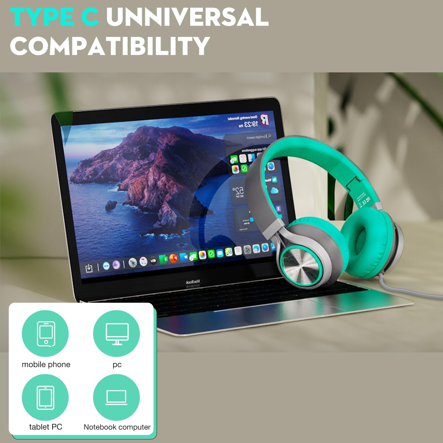 USB C Headphones with Mic and Volume Control, Over Ear Stereo Headsets for iP...
