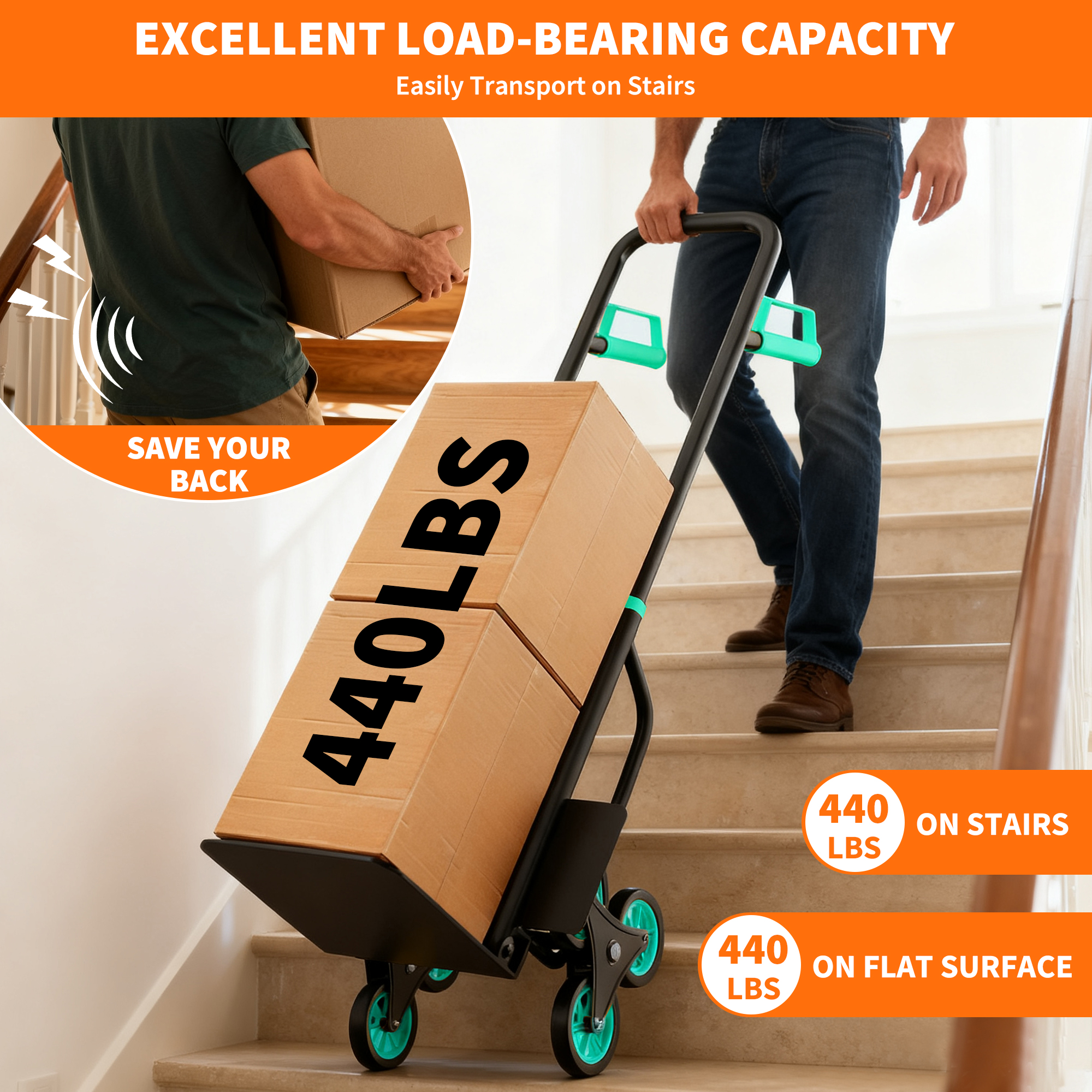 Heavy Duty Stair Climbing Cart Folding Hand Truck Dolly w/ Wheels 440lb Capacity