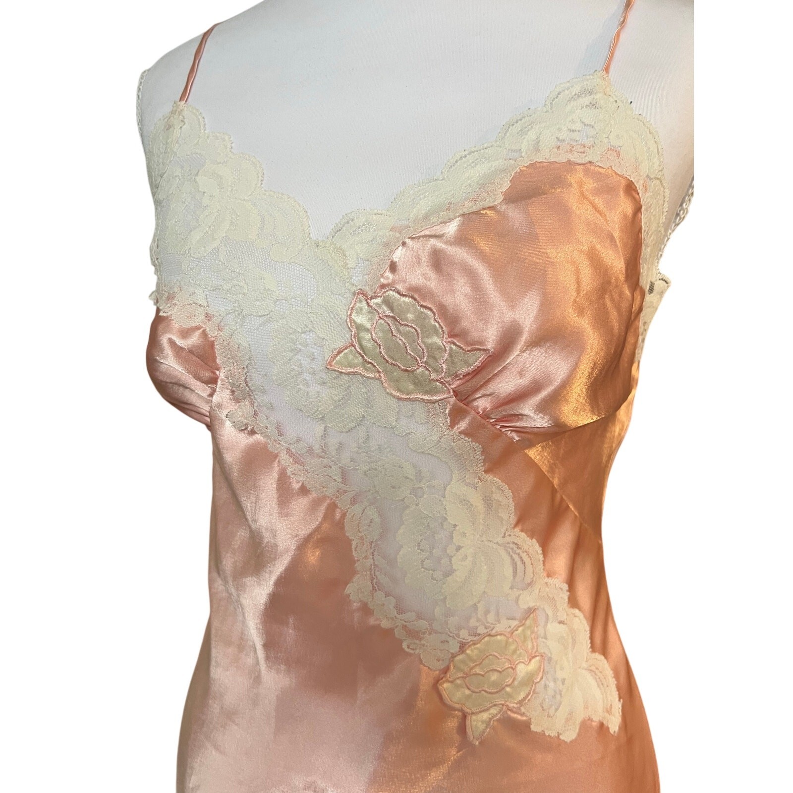 Vintage Victoria s Secret Pink Satin Lace Nightdress Slip Dress Y2K