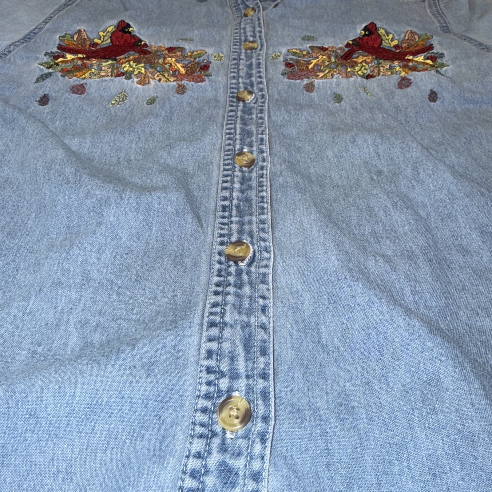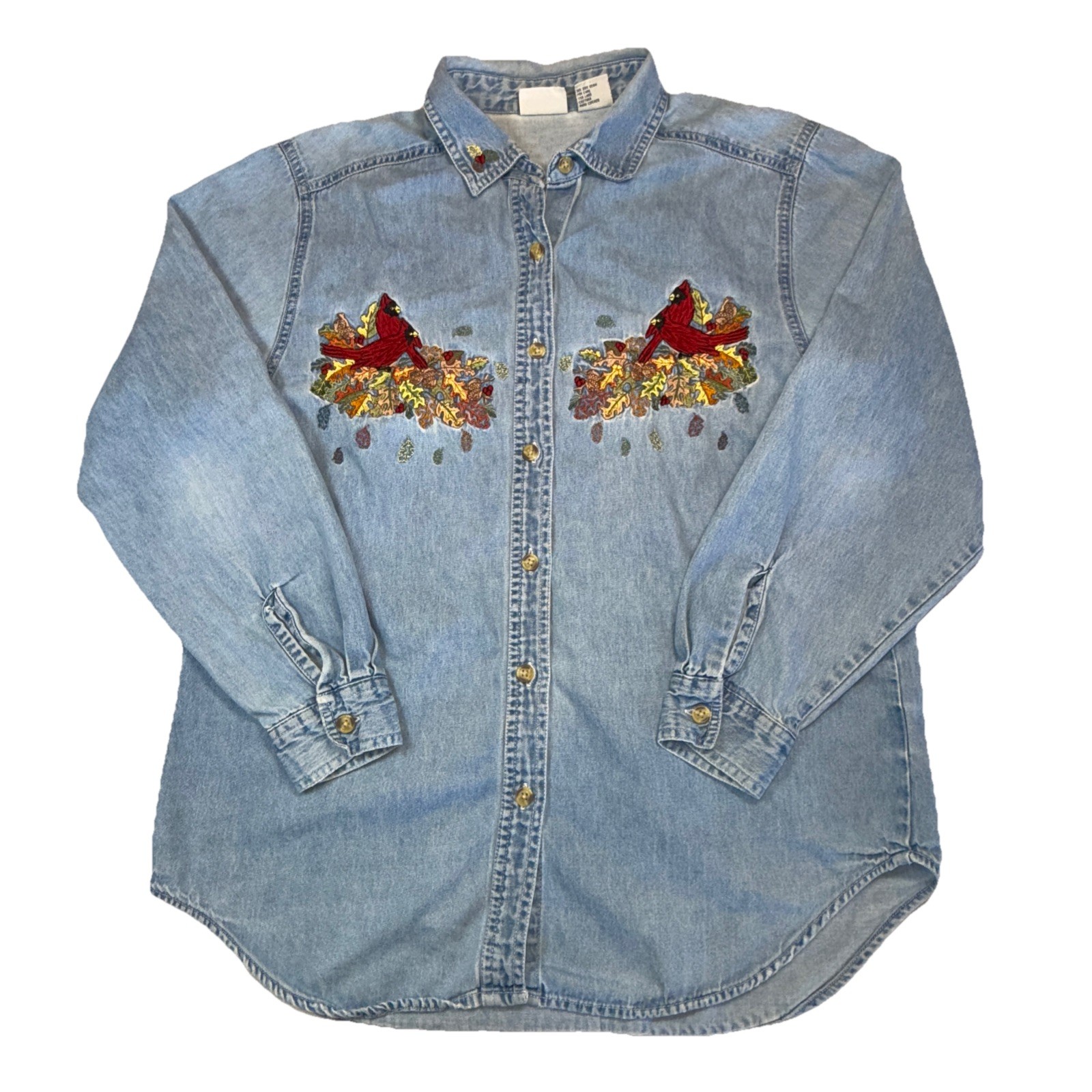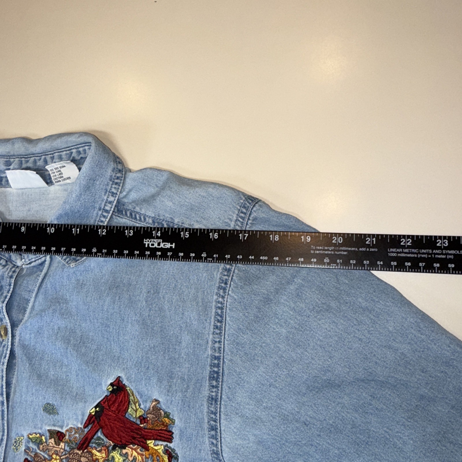 Bobbie Brooks Women Vintage Embroidered Denim Shirt Christmas Cardinals Fall M