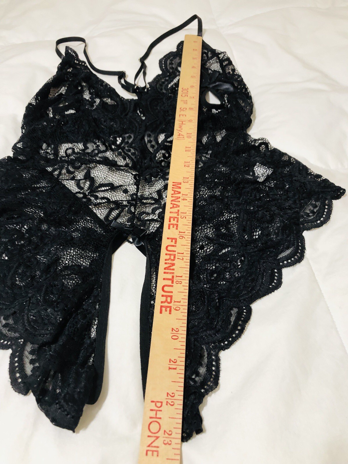 как выглядит Woman s Black Teddy/Lingerie Lace V Neck One-Piece Elastic Crotchless Large New фото