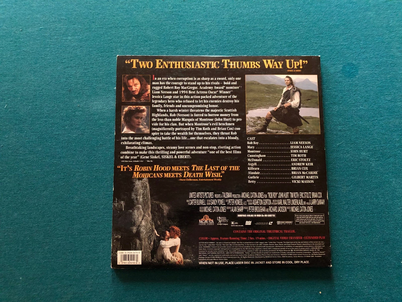 Rob Roy Laserdisc, 1995 Deluxe Letterbox Edition Liam Neeson Jessica Lange