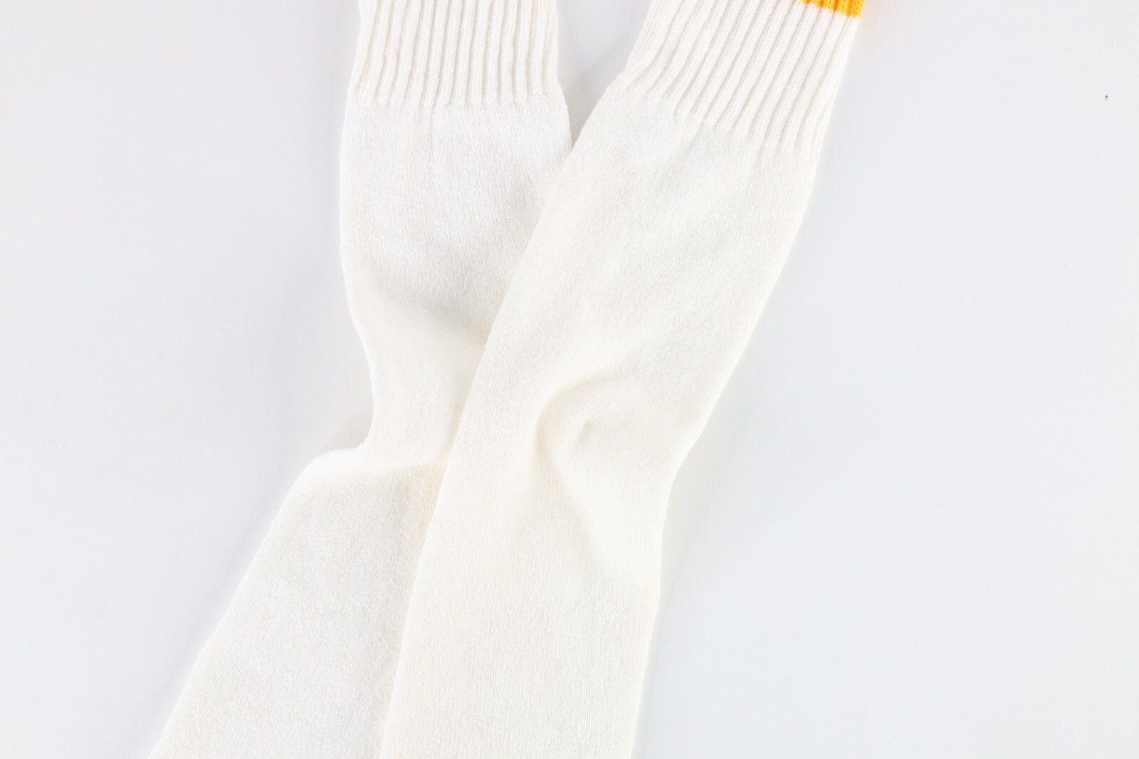 Vtg 70s Streetwear Cotton Striped Tube Socks White Yellow USA Size Large 9-12