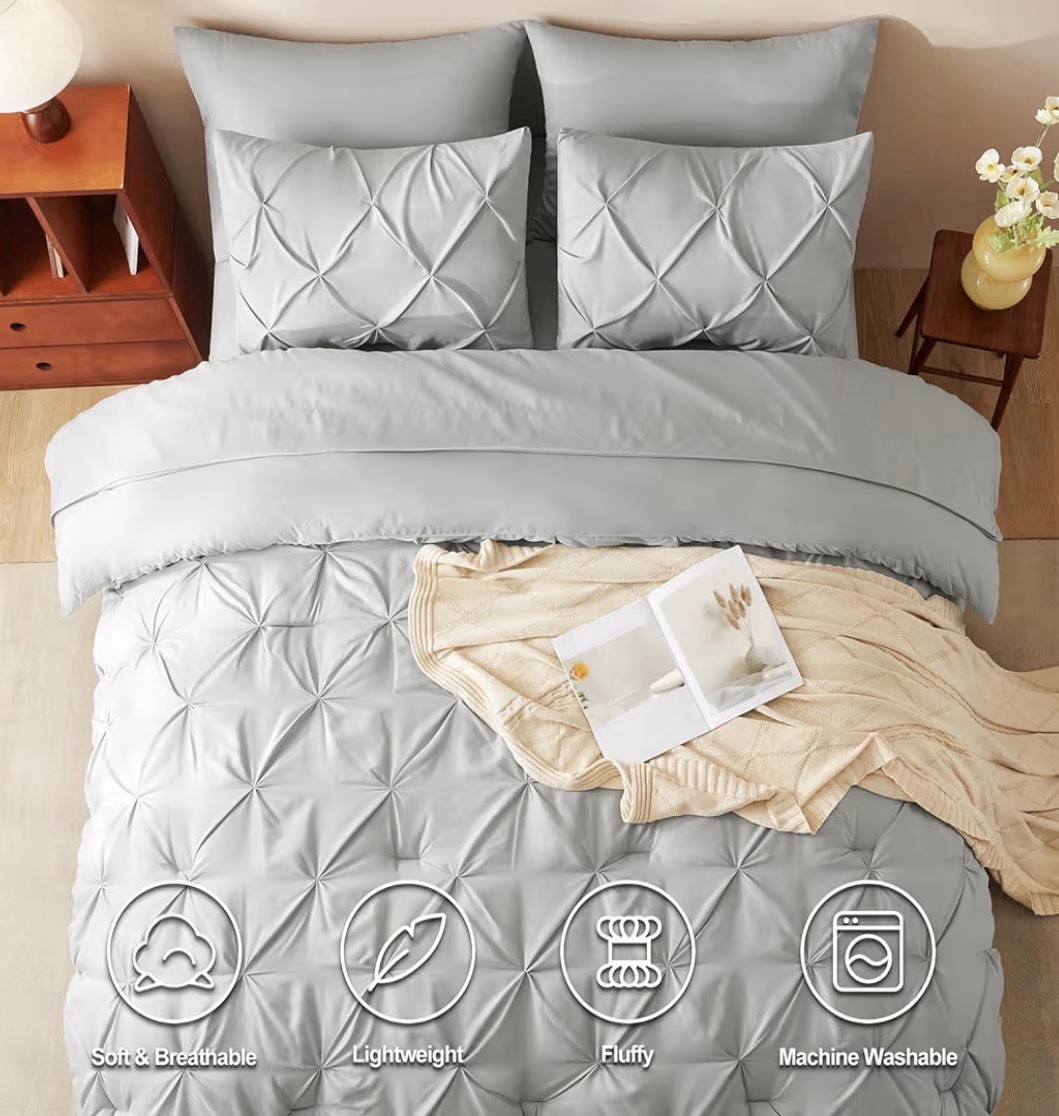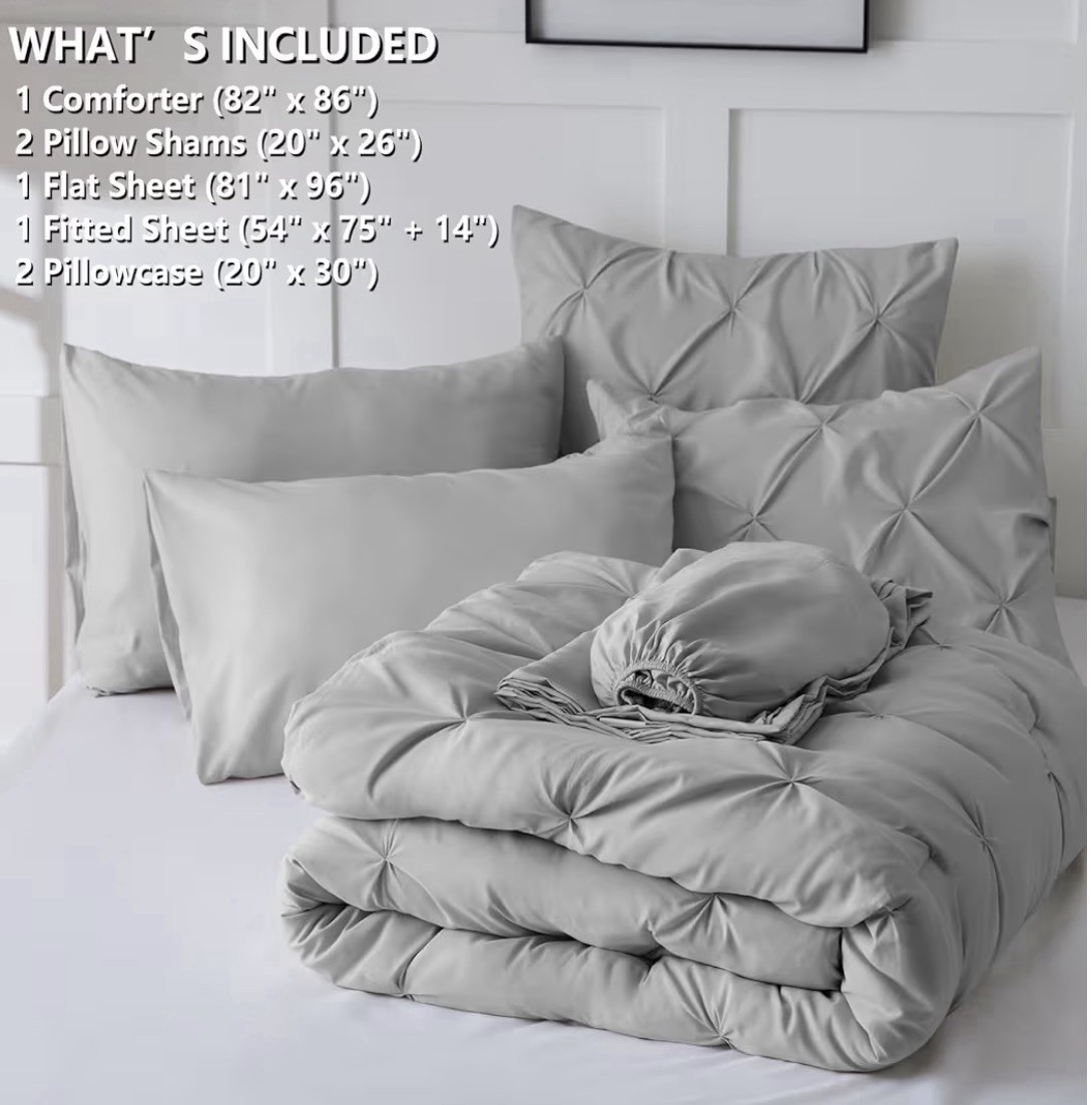 как выглядит CozyLux Full Size Comforter Sets Light Grey 7 Pieces Bed in a Bag Gray Sealed фото