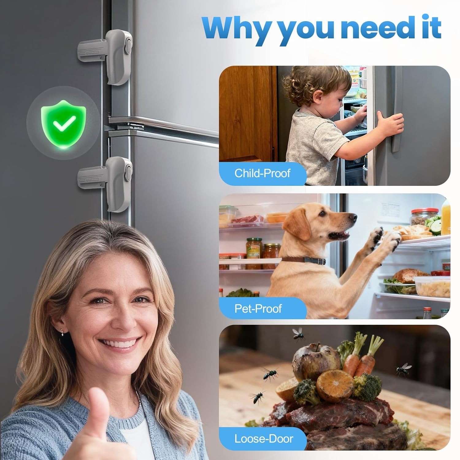 2 Pack Dual Mode Fridge Locks, Upgraded Child Proof Refrigerator Lock with Stick