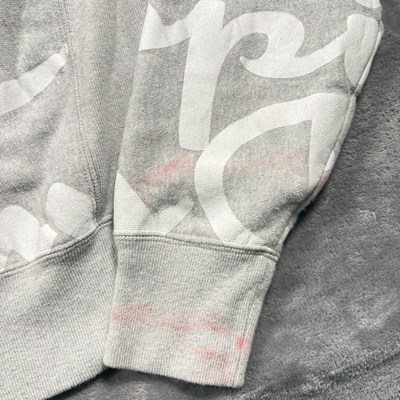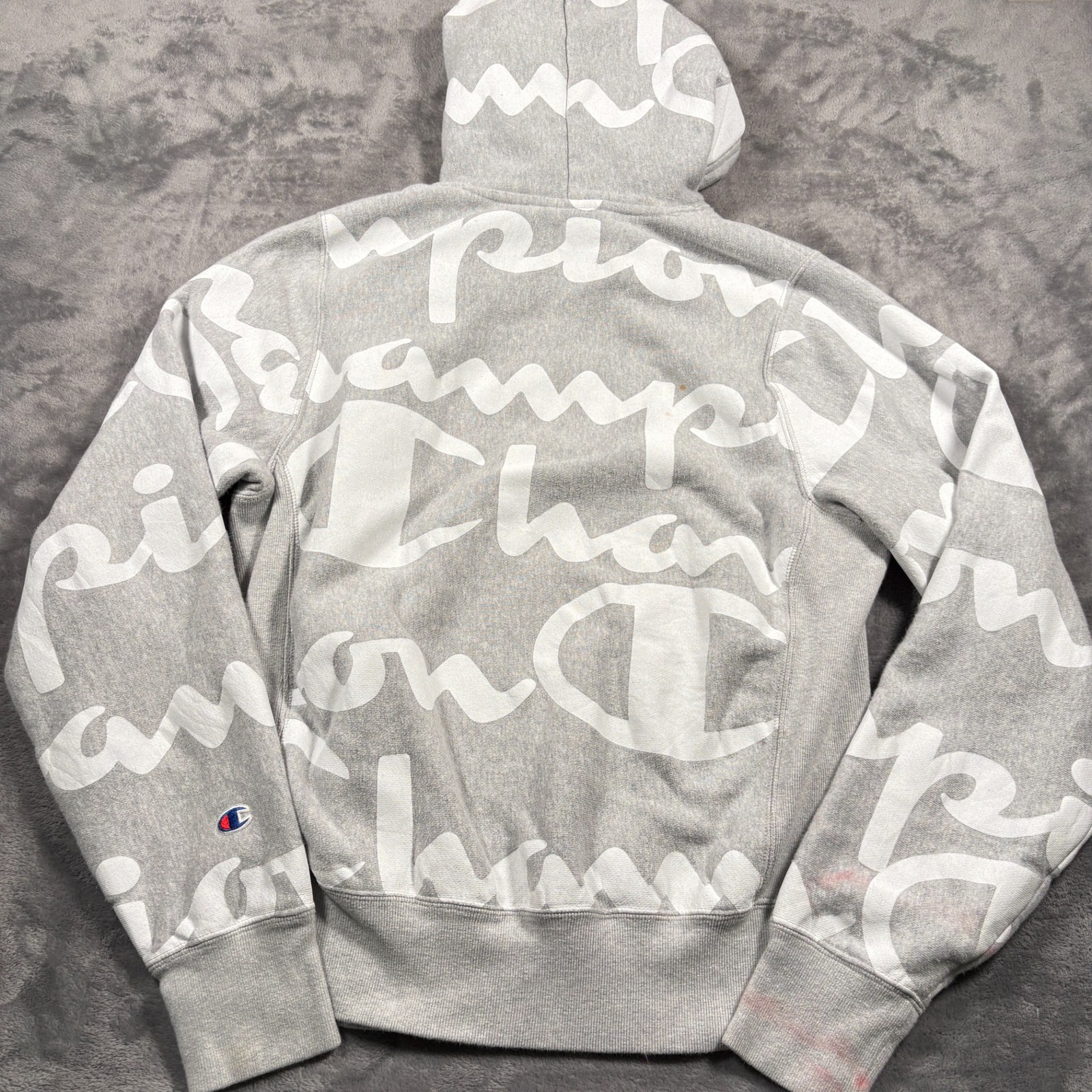 как выглядит Champion Hoodie Womens Small Gray White All Over Print Logo Outdoor Fleece Lined фото
