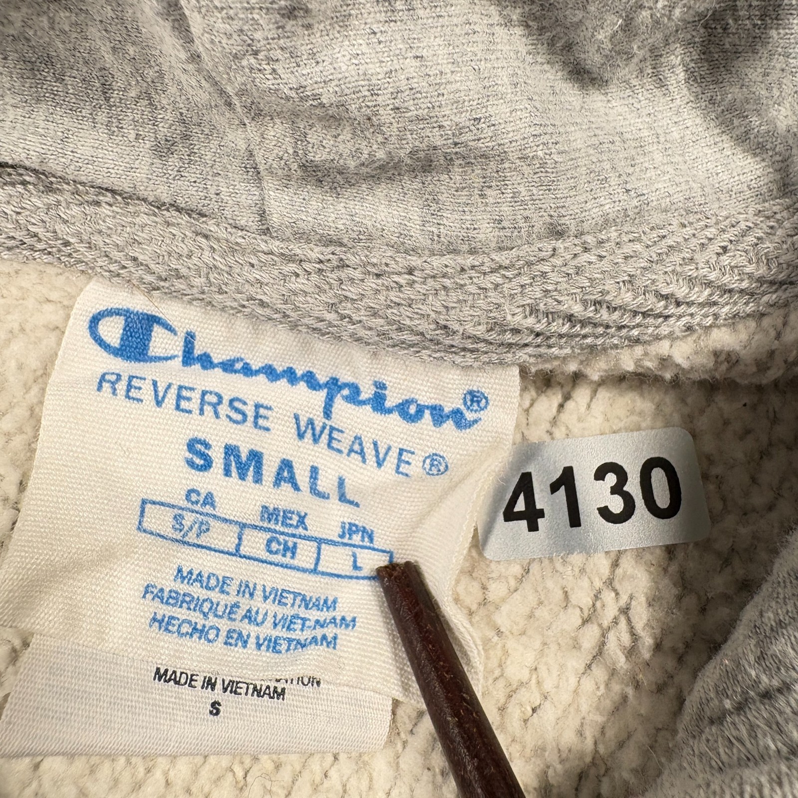 Champion Hoodie Womens Small Gray White All Over Print Logo Outdoor Fleece Lined