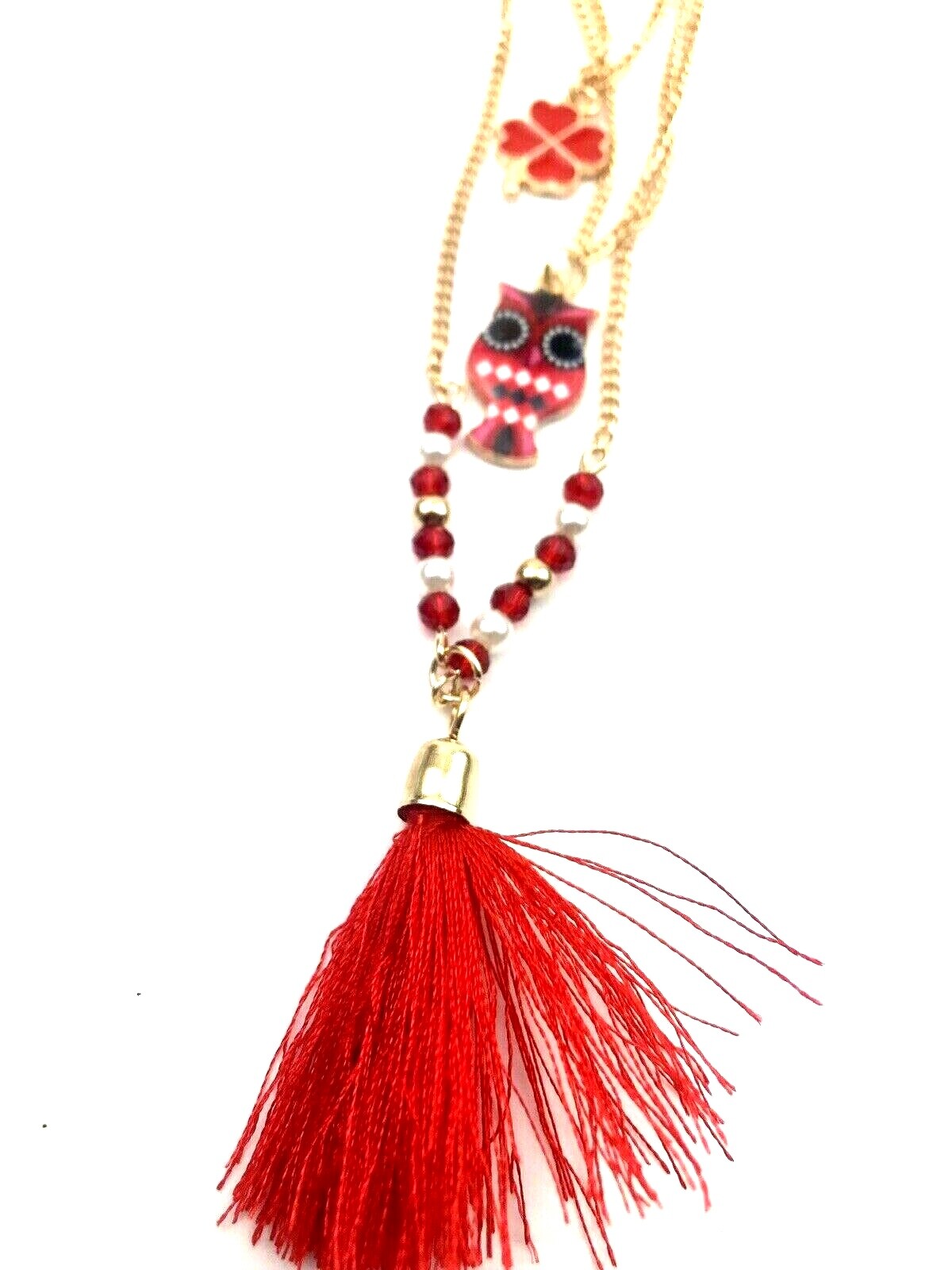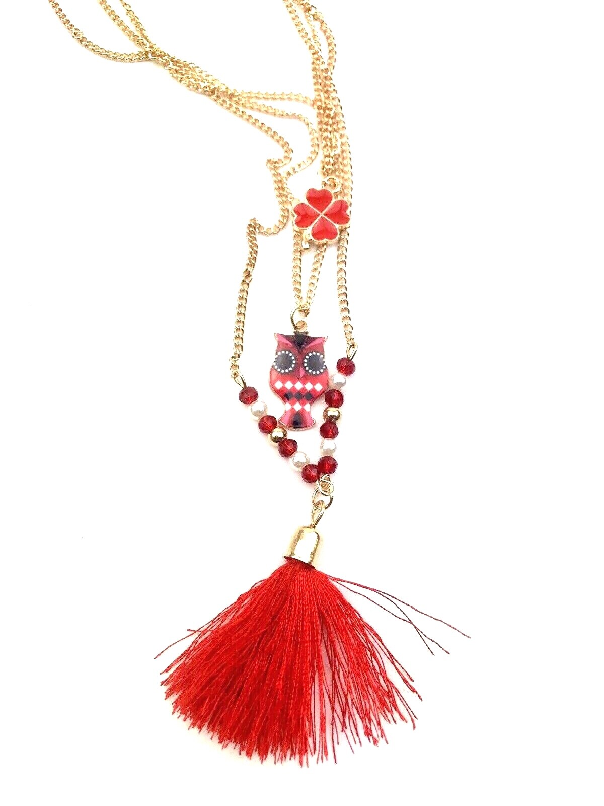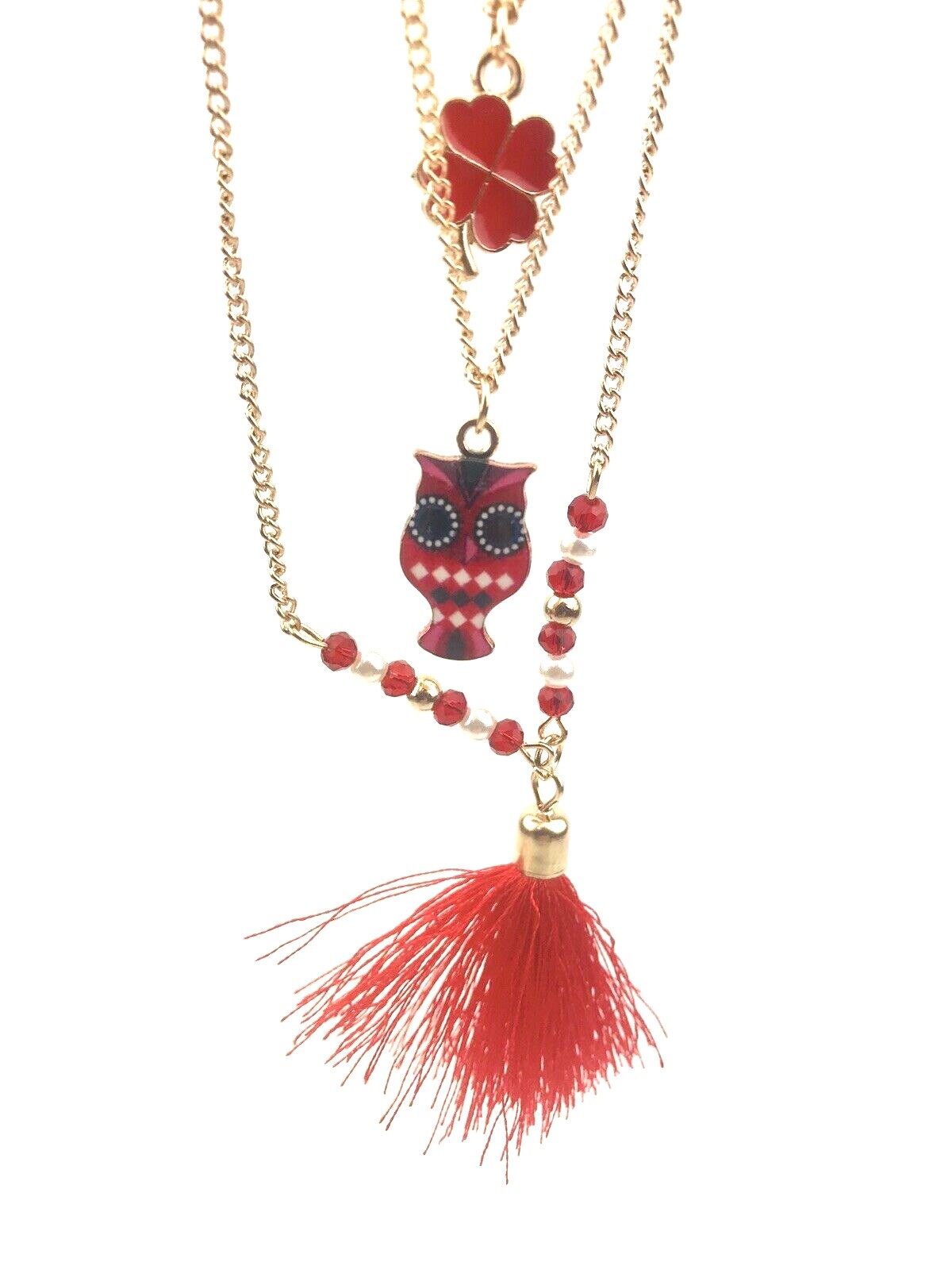 Owl Tassel Necklace Jewelry gold chain beads red children girls kids