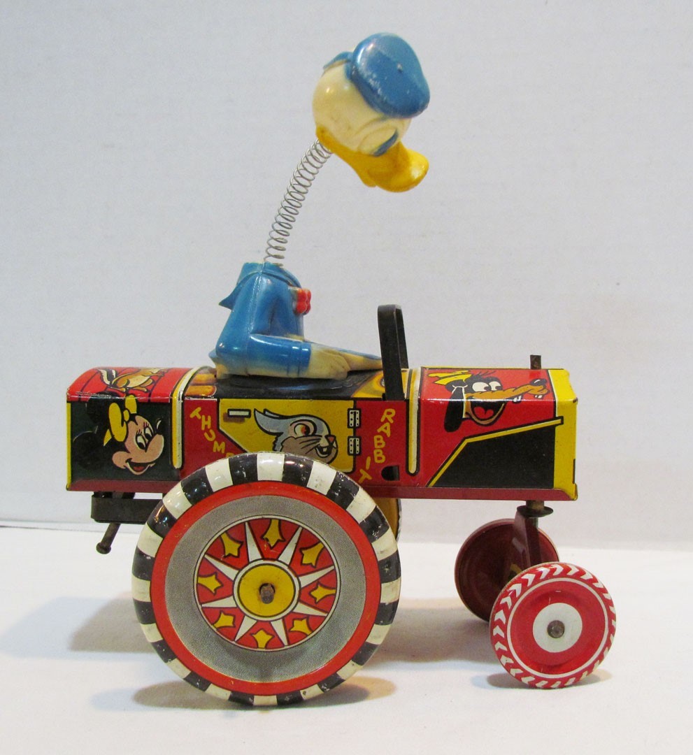 AS-IS MARX DISNEY DONALD DUCK DIPSY CAR TIN WIND-UP 1940's or 50's MISSING ARM