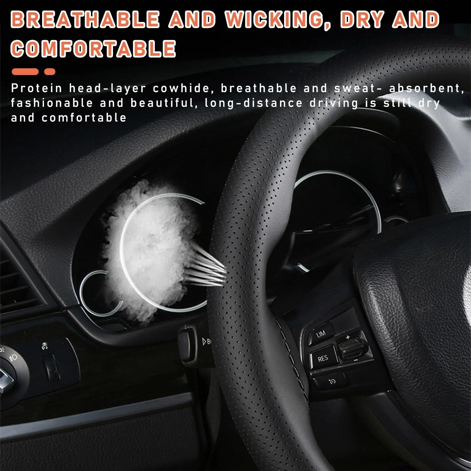 Car Steering Wheel Cover, Anti-Slip Stitch on Wrap Steering Wheel Protector for