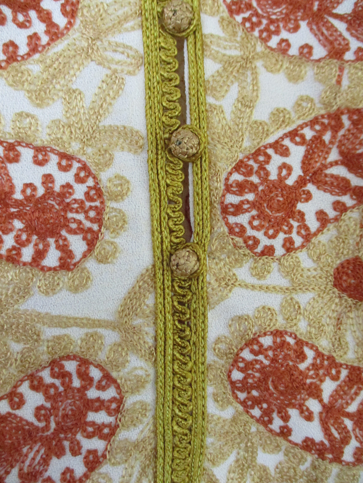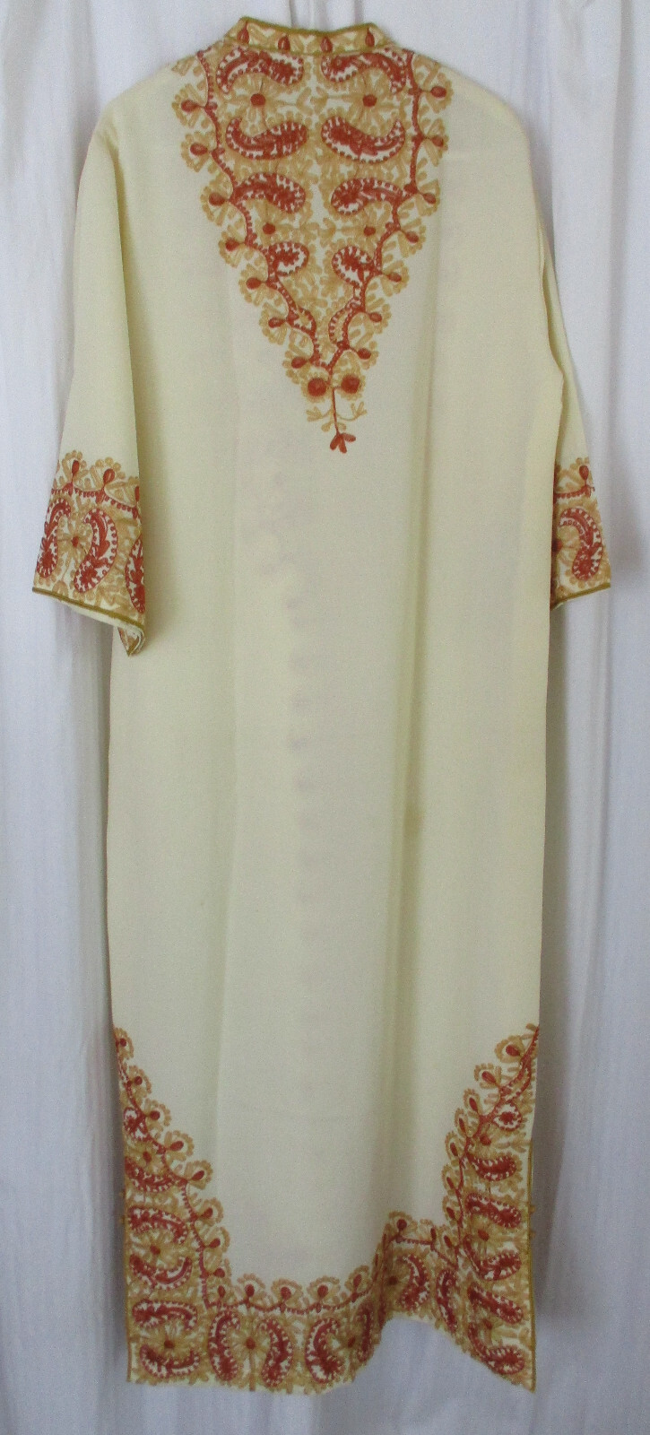 Kurta Kurti Kaftan L-XL Crewel Embroidered Beige Gold Long Dress Tunic-NWOT