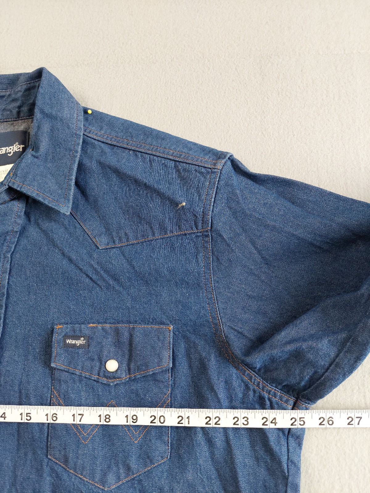 как выглядит Wrangler Men Shirt 17X33 Blue Collar Long Sleeve Chest Pocket Button Up Western фото