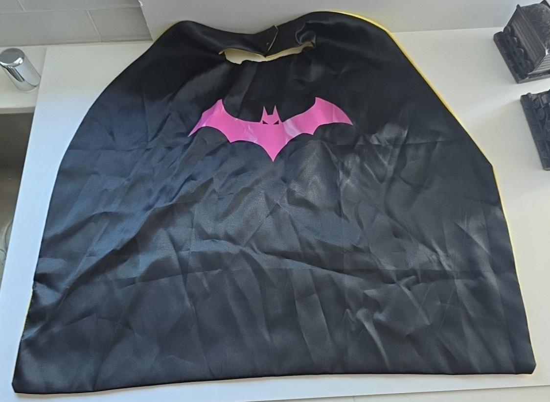 как выглядит Kids Superhero Cape Batgirl Batman Themed Black Pink Logo фото