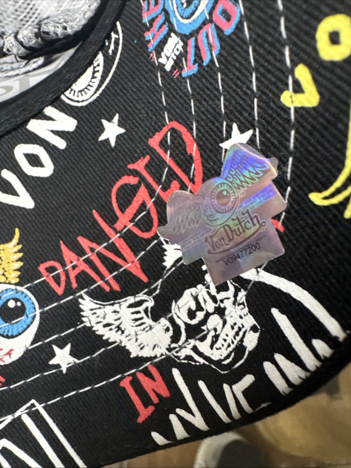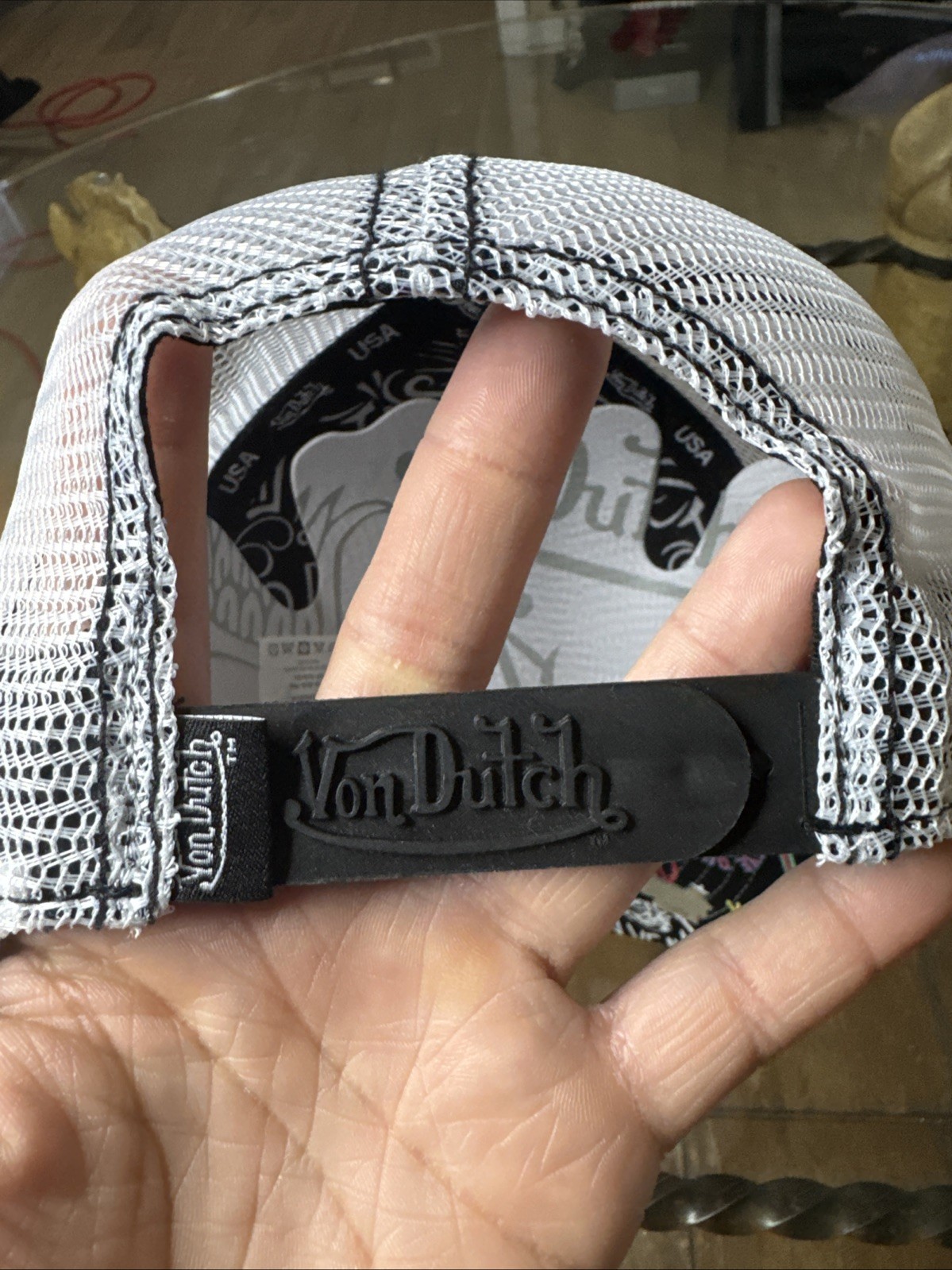 как выглядит Von Dutch Jax Black Trucker Cap NWOT Embroidered All Over Logo OSFA Hat Mesh фото