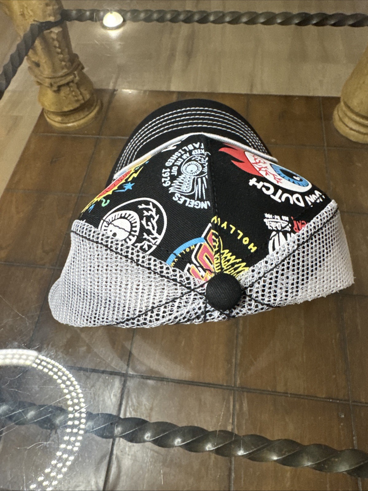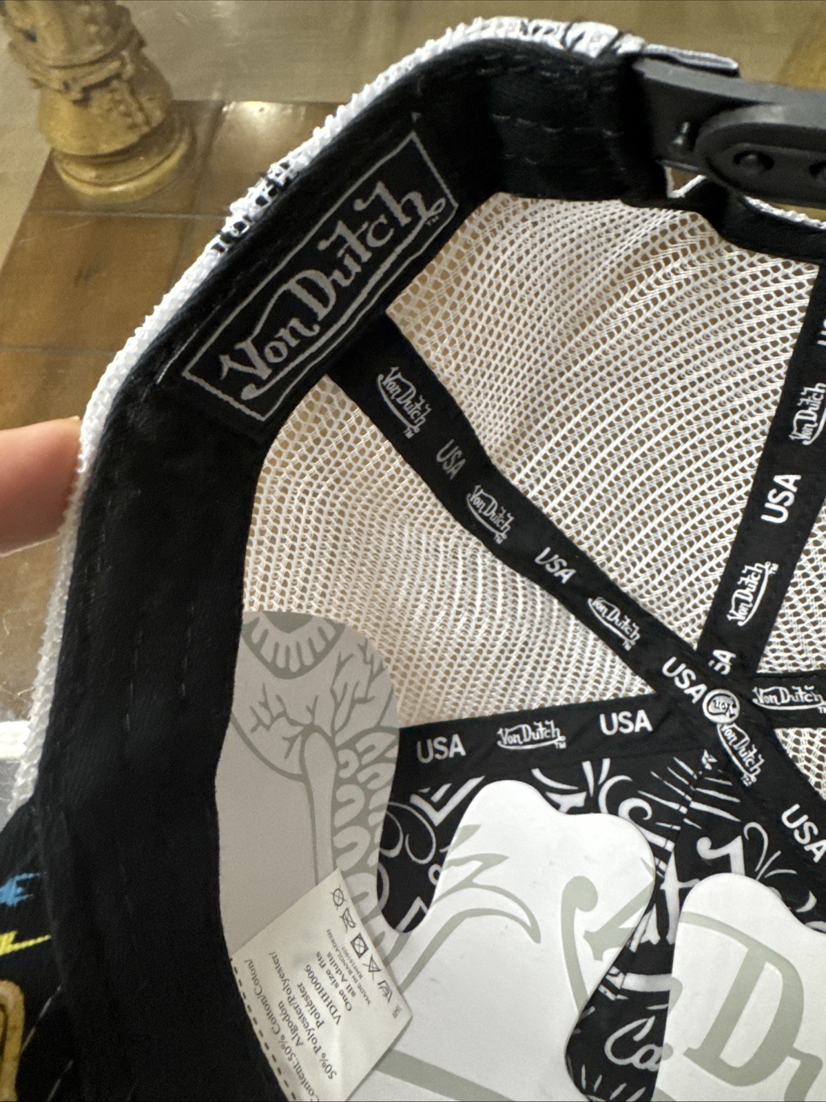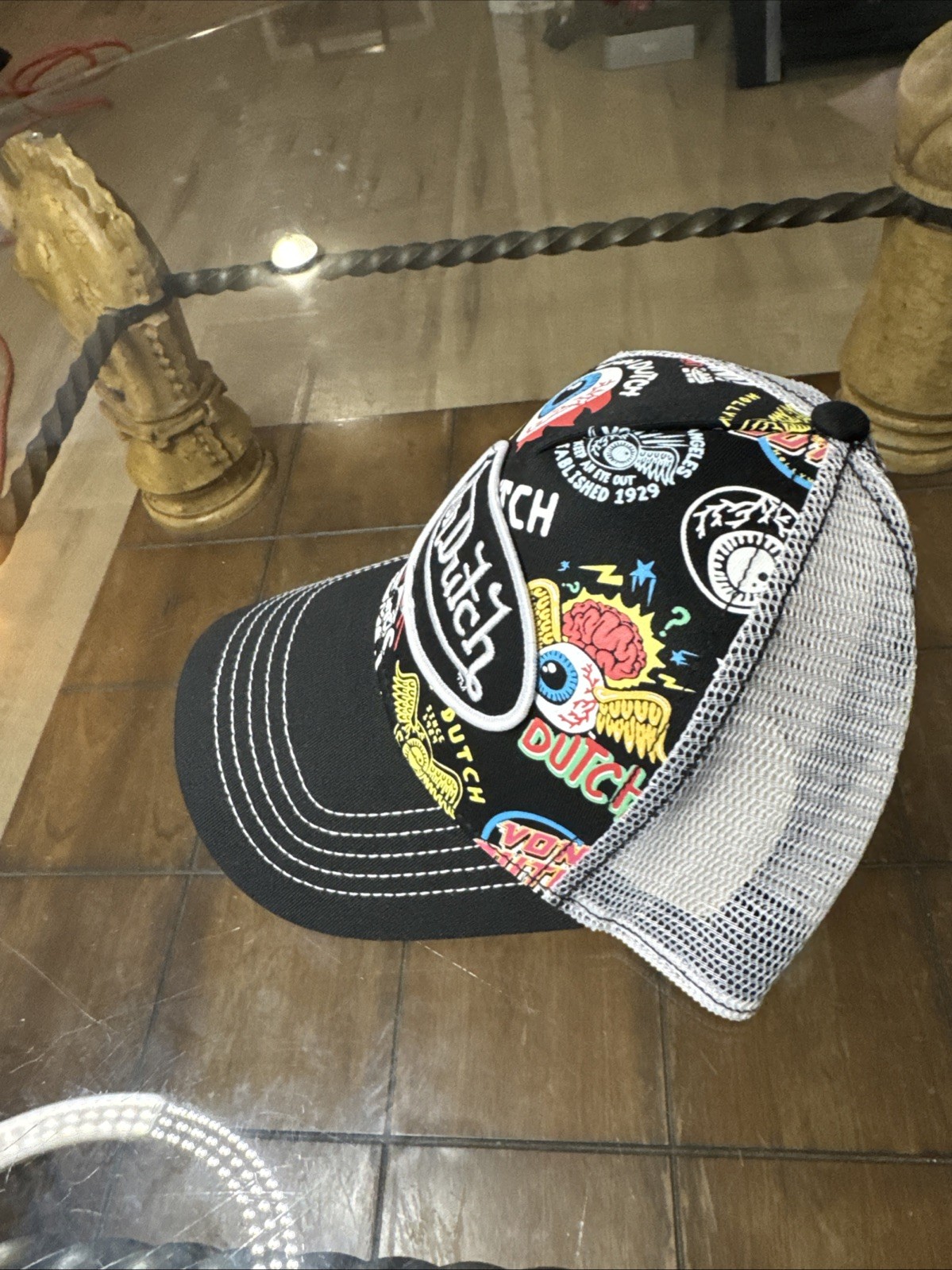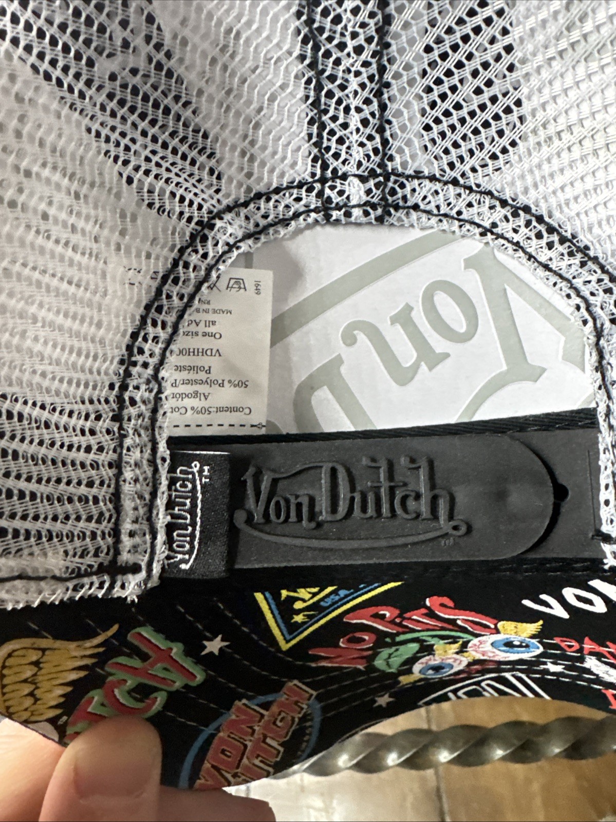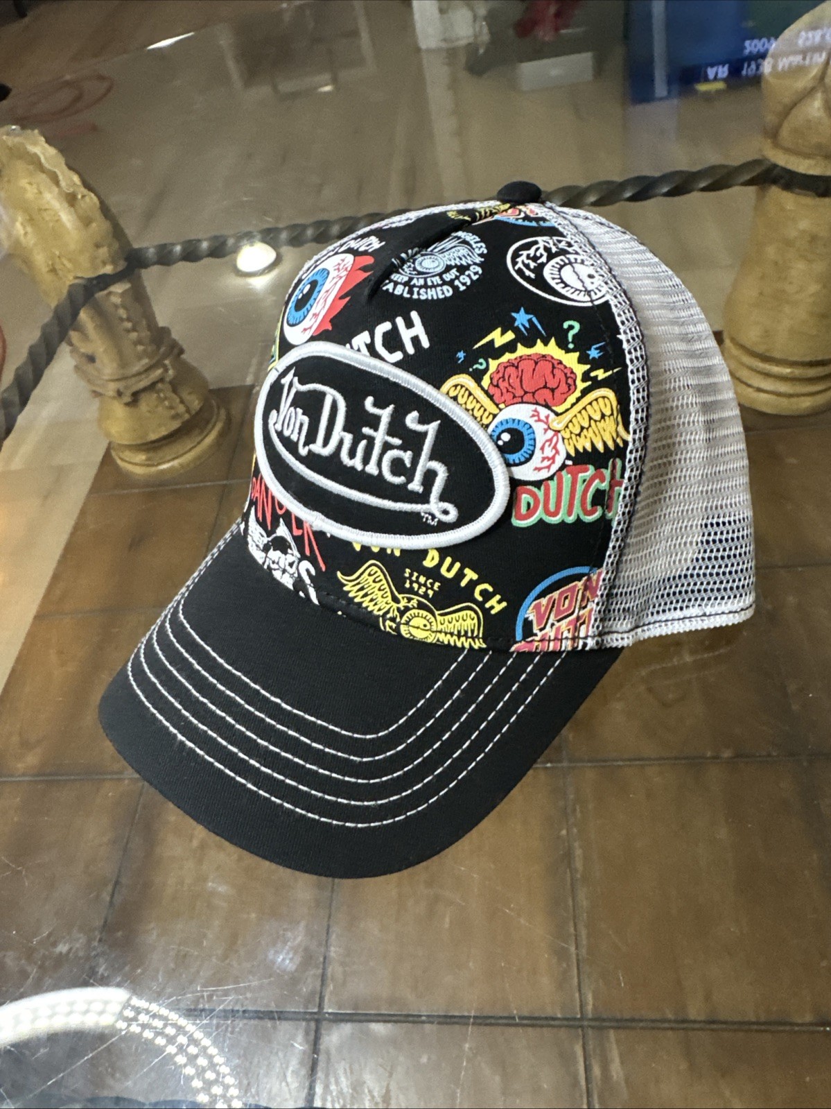 Von Dutch Jax Black Trucker Cap NWOT Embroidered All Over Logo OSFA Hat Mesh