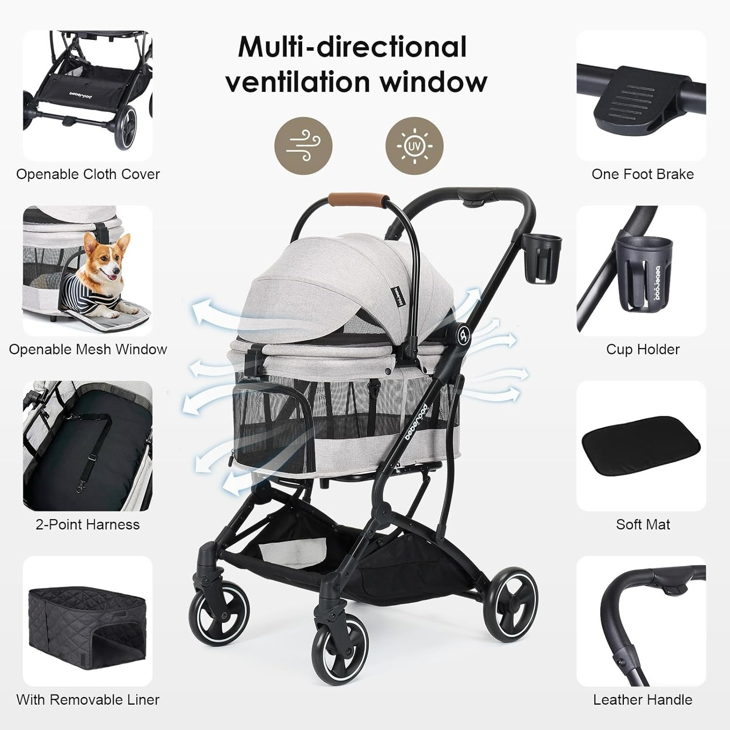 3 in 1 Small Pet Stroller for Dogs Cats, 4 Wheels for Dogs 1088QT2