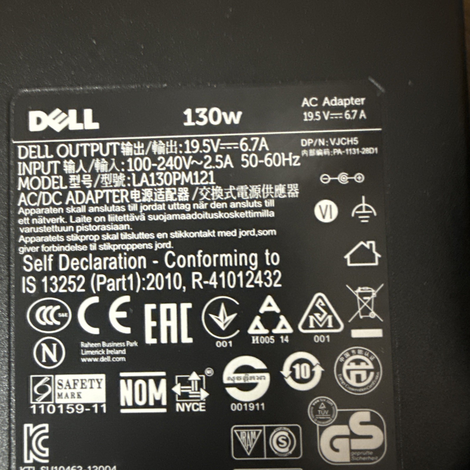 как выглядит DELL LA130PM121 19.5V 6.7A 130W Genuine Original AC Power Adapter Charger Tested фото