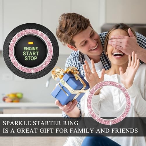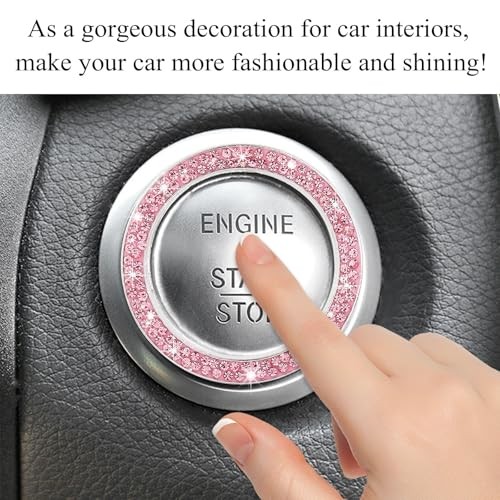 Car Bling Engine Start Ring Decal, Sparkling Crystal Rhinestone Auto 1 PC Pink