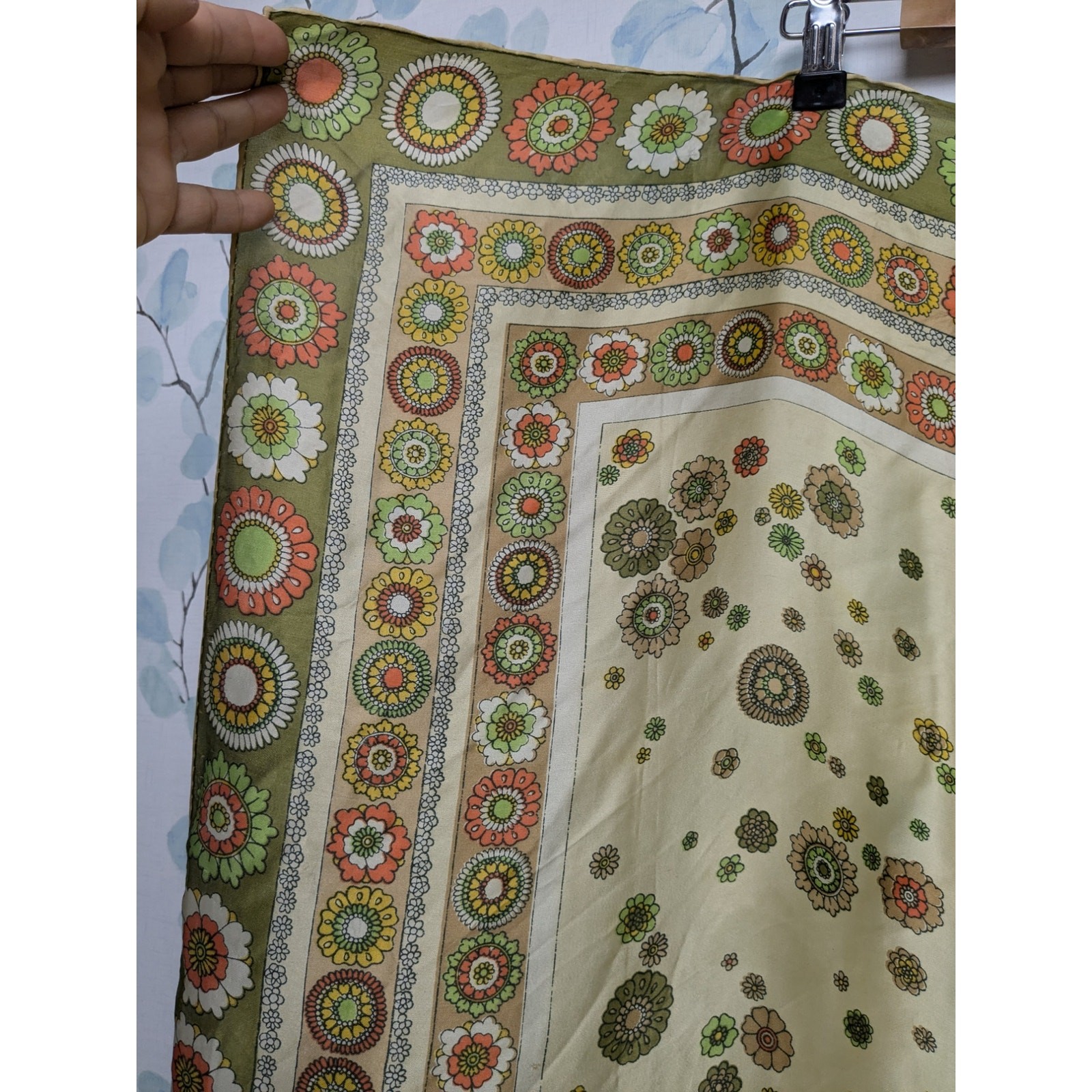как выглядит Vintage 1960s 70s MOD Green Pop-Art Floral Medallion Retro Silk Scarf 30" Square фото