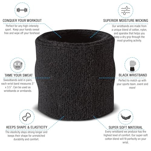 Sweatbands for Kids, Moisture Wicking 2 Wristbands and 1 Headband Set, Black