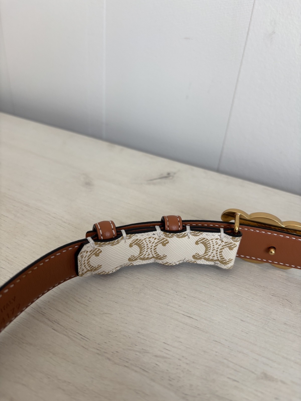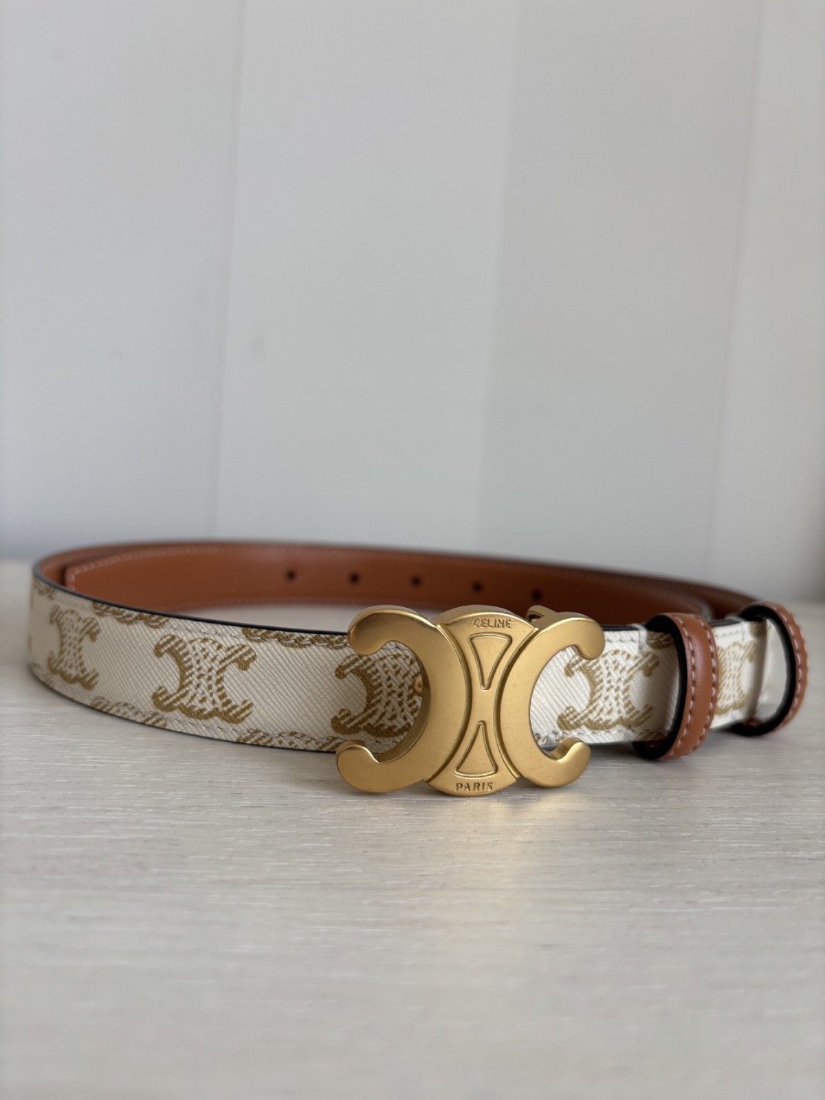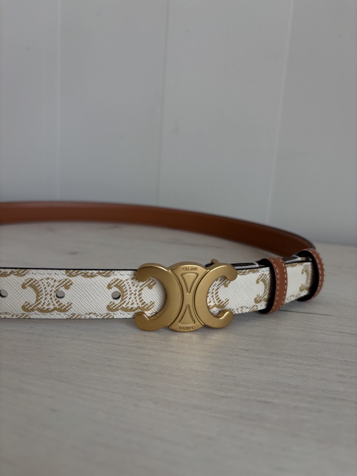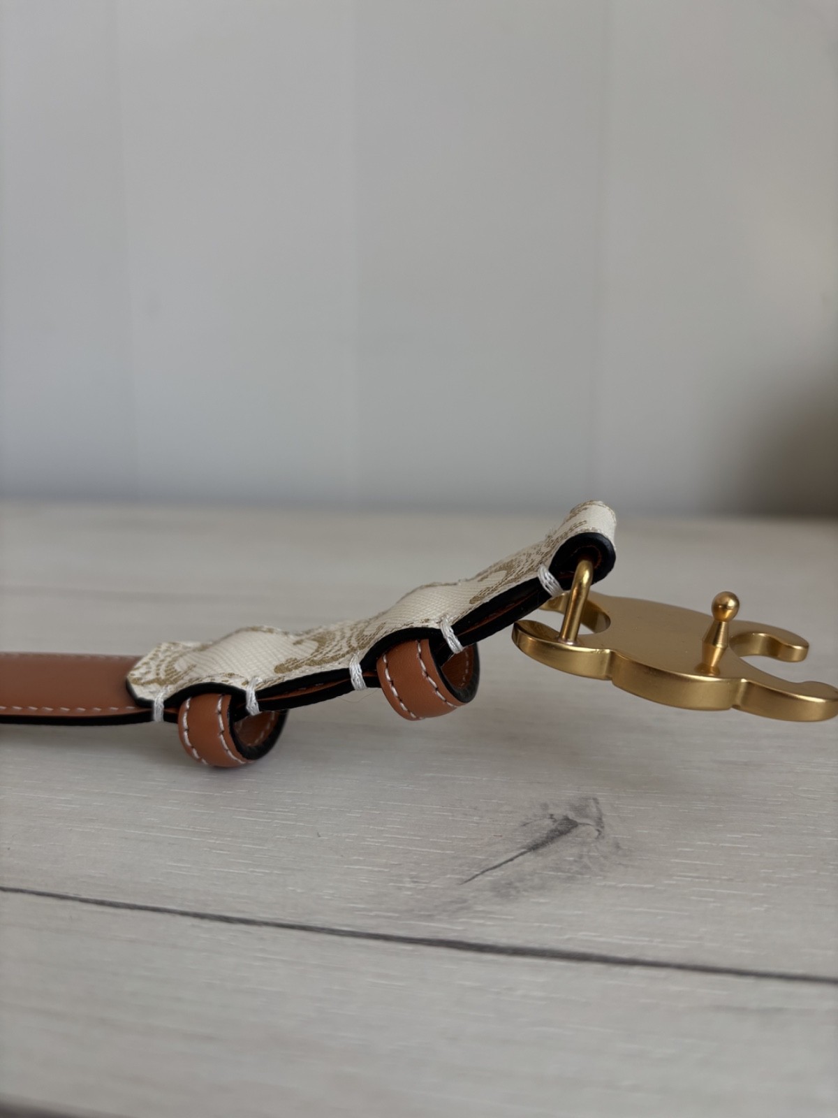 как выглядит Womens Celine Triomphe Gray/Brown Monogram Belt Made in Italy size 85 фото