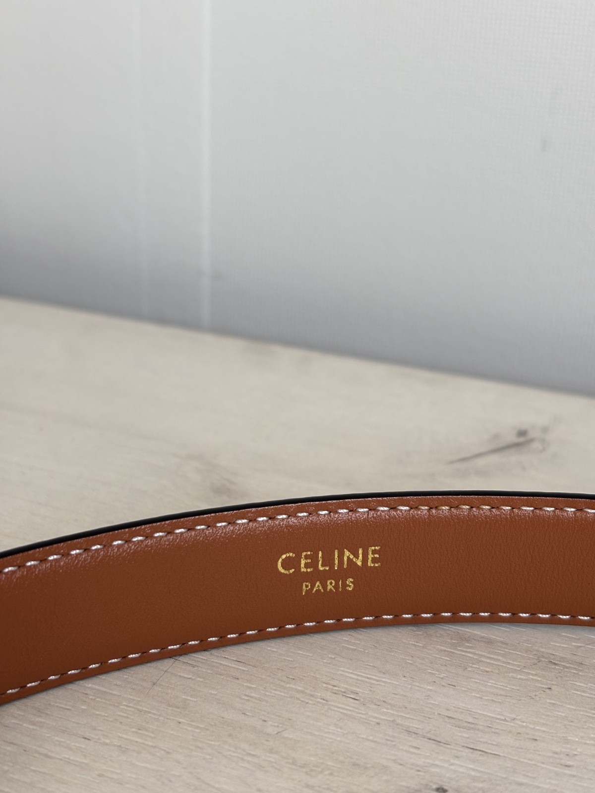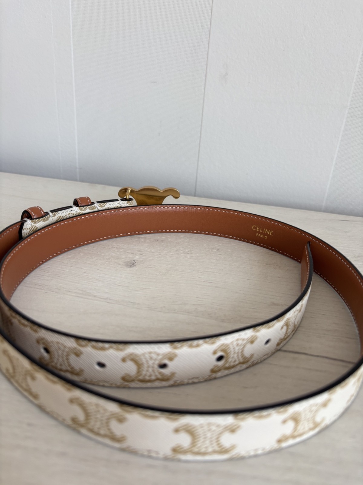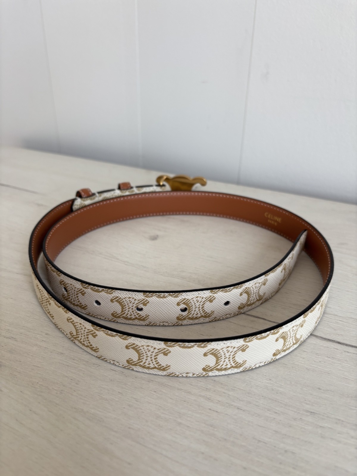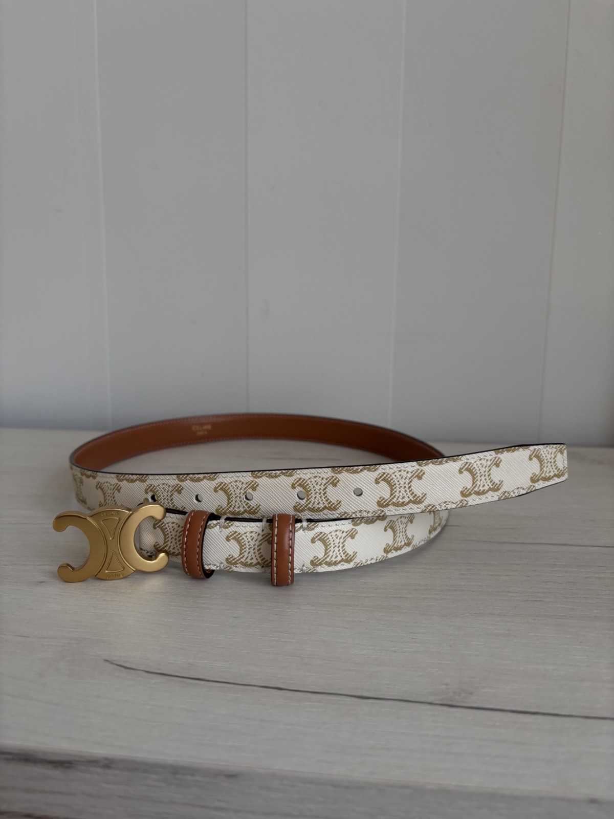 как выглядит Womens Celine Triomphe Gray/Brown Monogram Belt Made in Italy size 85 фото