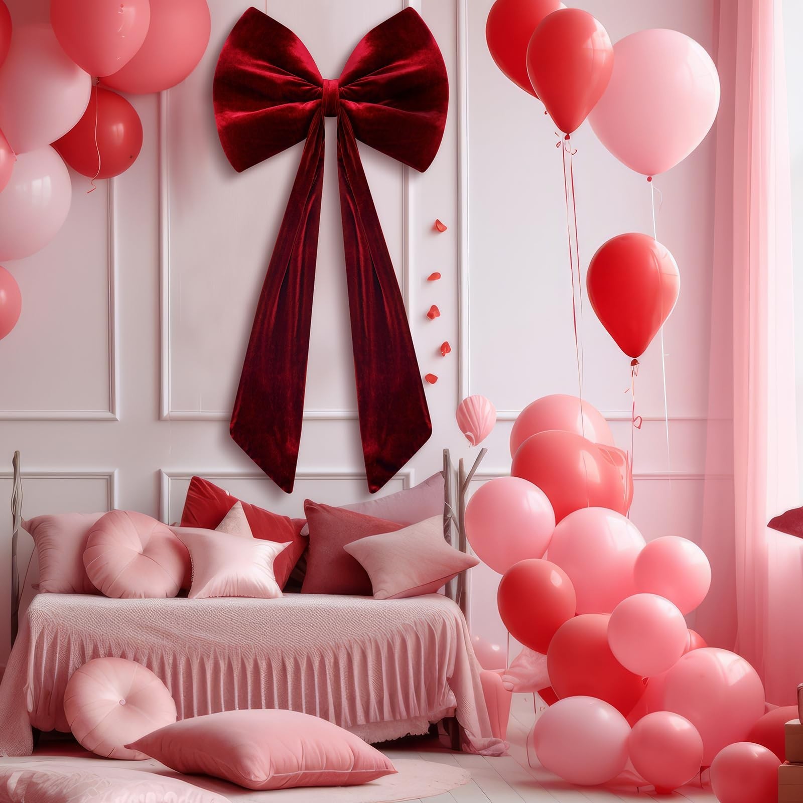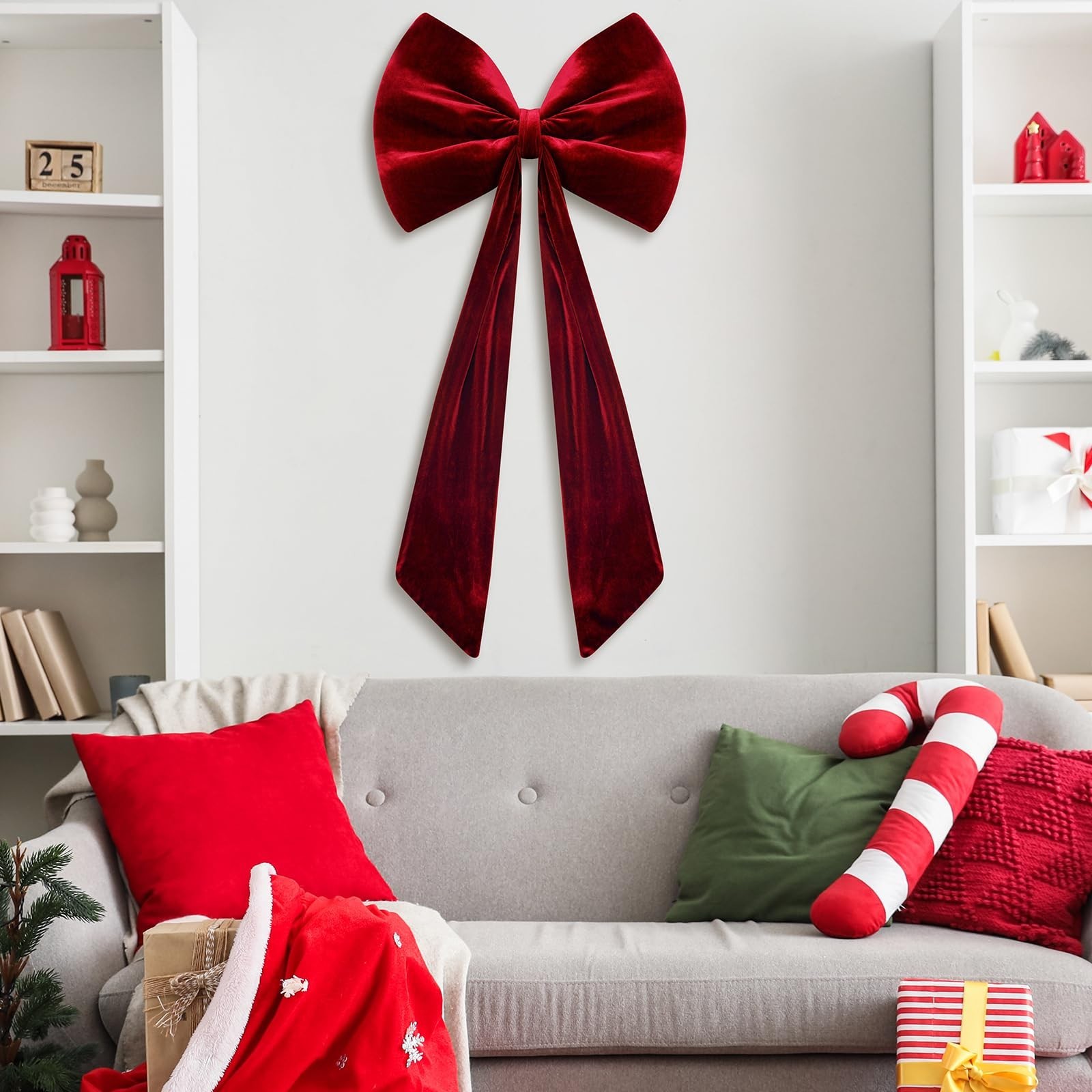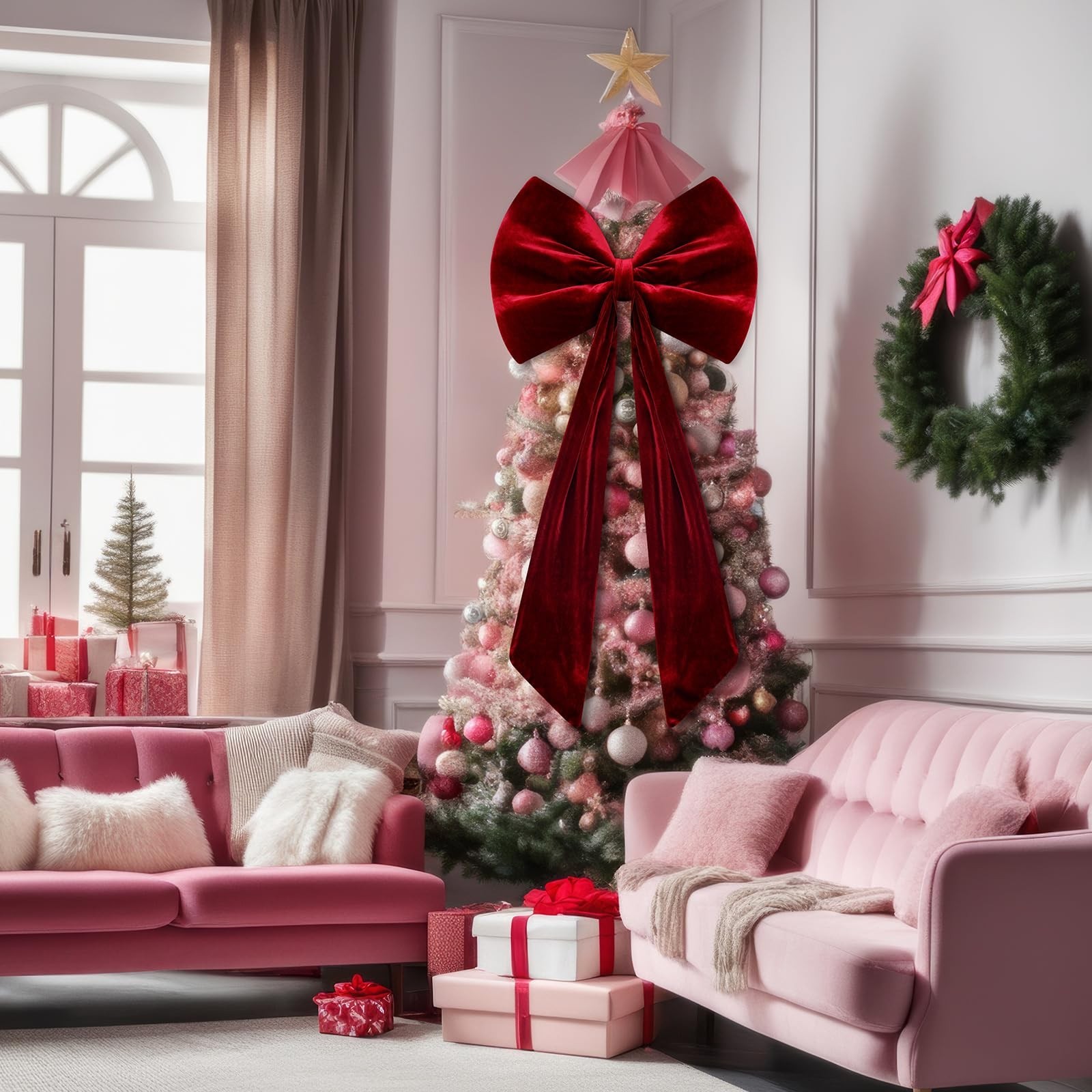 yesaior 40 Inch Extra Large Velvet Red Bow Christmas Tree Topper Giant Bow Bu...