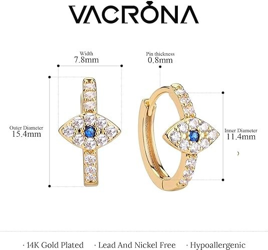 как выглядит Gold Evil Eye Huggie Hoop Earrings 18K Gold Plated CZ Evil Eye Hoop Earrings Min фото