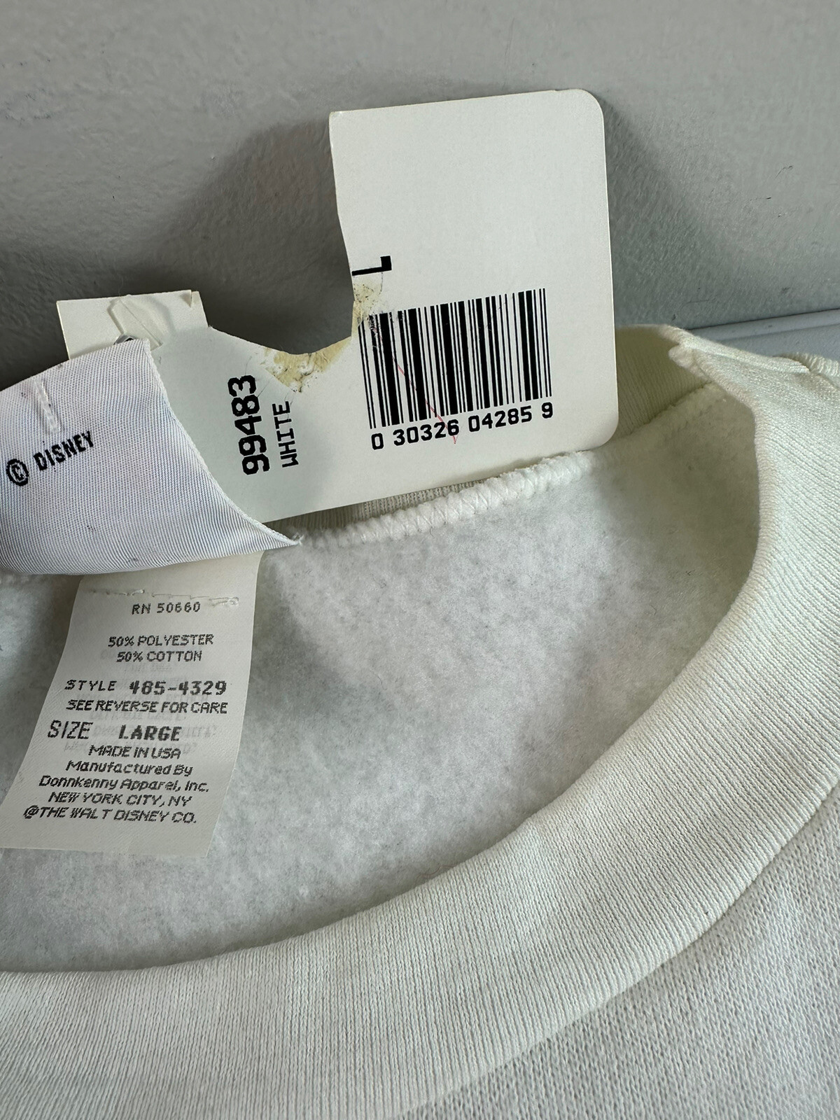 Vintage NWT Deadstock Disney Sweatshirt Sz L White Mickey Co USA MADE