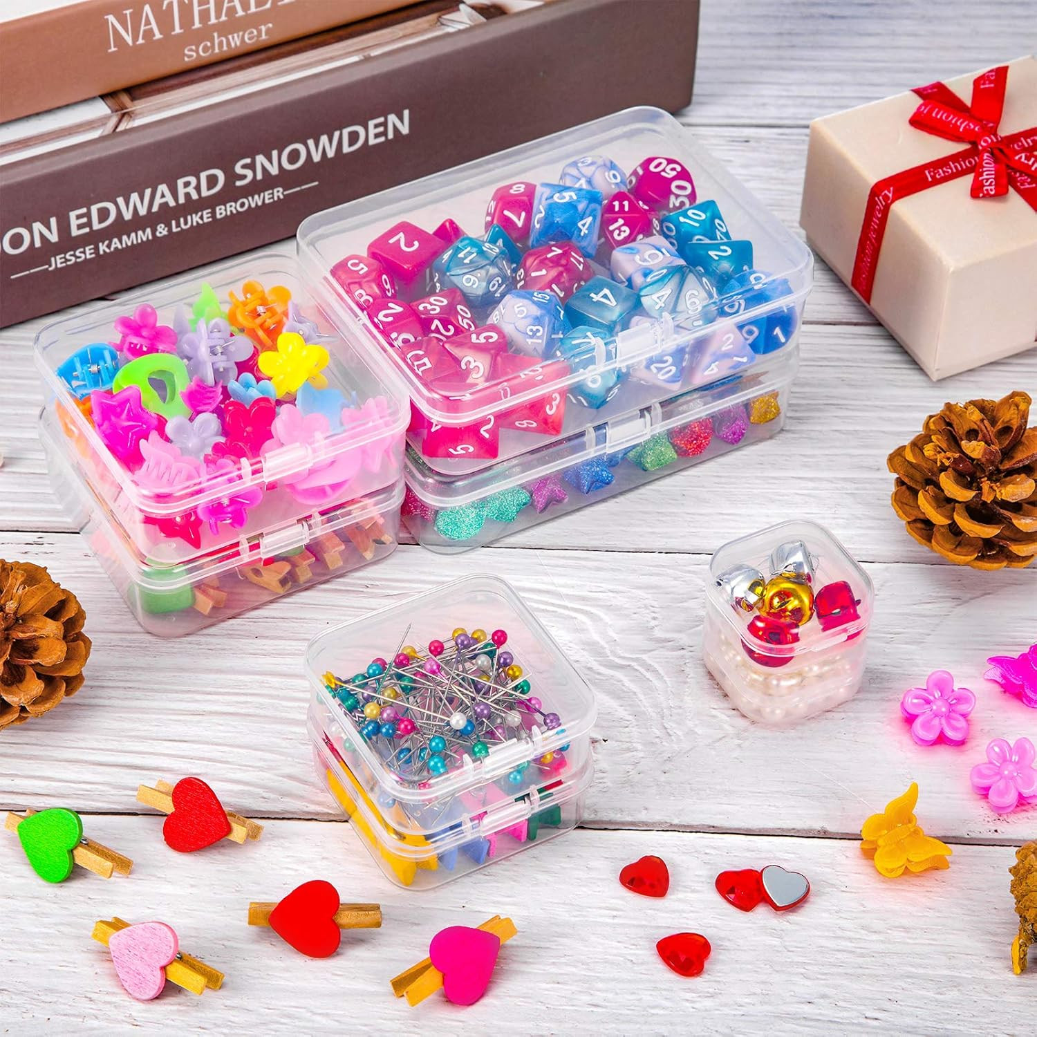 24 Packs Small Clear Plastic Beads Storage Containers Box with Hinged Lid for St