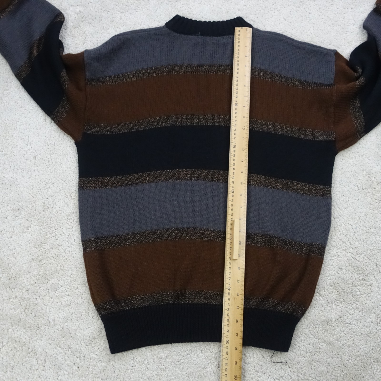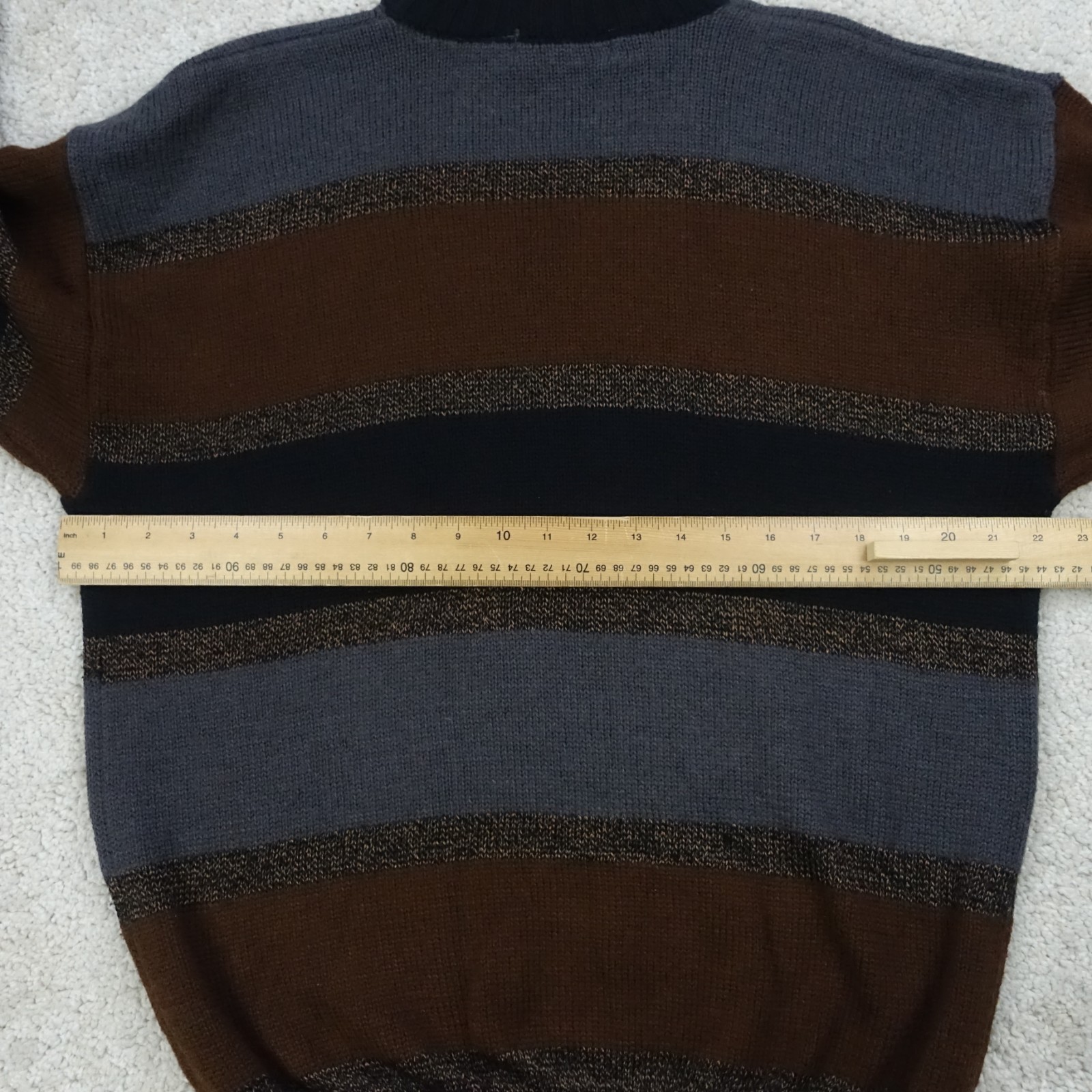 как выглядит Mens Large Jumper Multicolour Horizontal Stripe Mock Neck Tight Knit Rib Winter фото