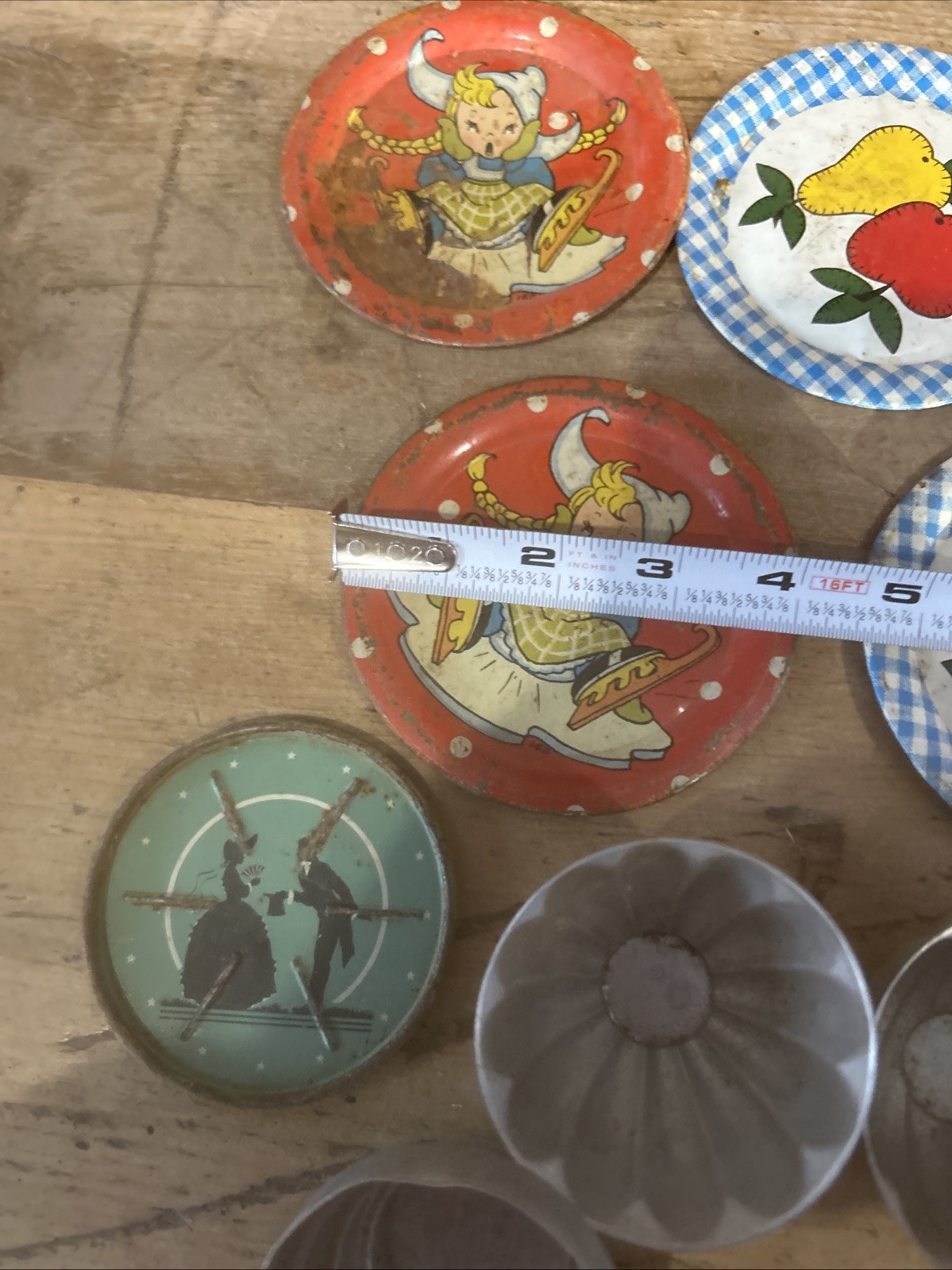 как выглядит Lot of vintage Tin Childs Dishes фото