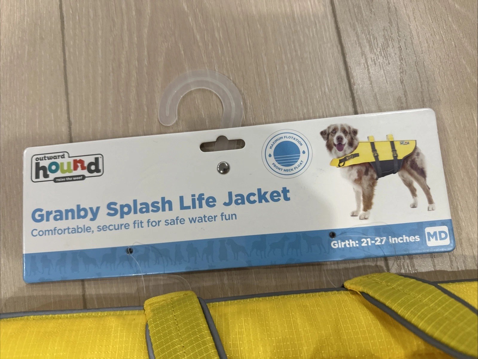 Outward Hound Granby Splash Dog Life Jacket YELLOW Medium 30-55 lbs NEW