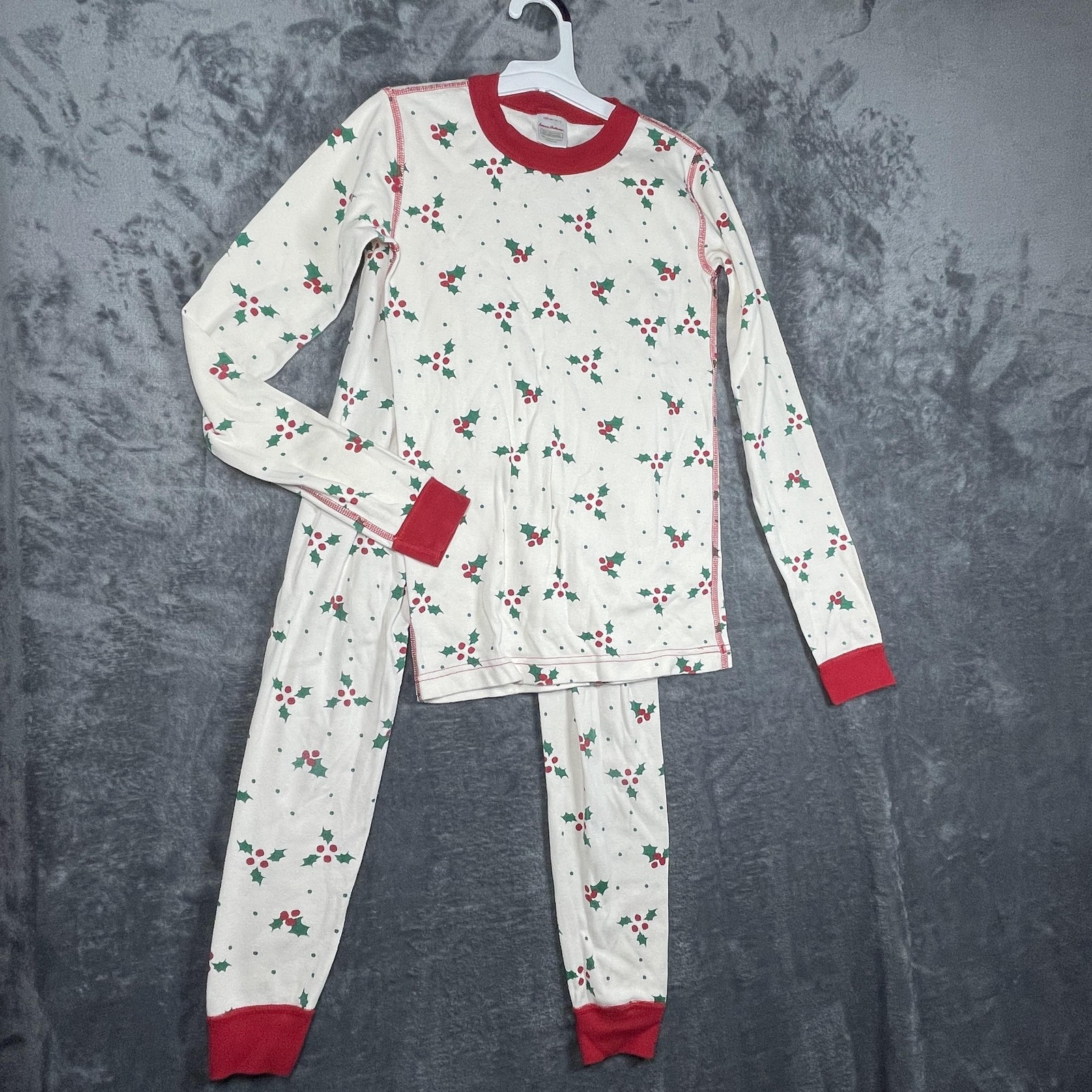 Hanna Andersson Christmas Pajama Set Youth 12/150cm Red Green Santa HollyOrganic