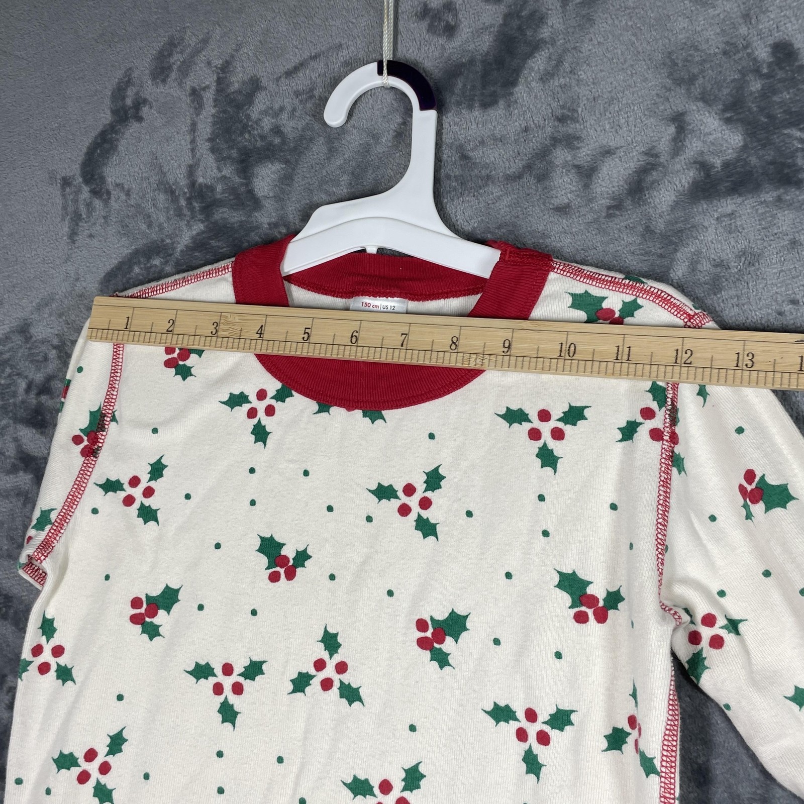 как выглядит Hanna Andersson Christmas Pajama Set Youth 12/150cm Red Green Santa HollyOrganic фото