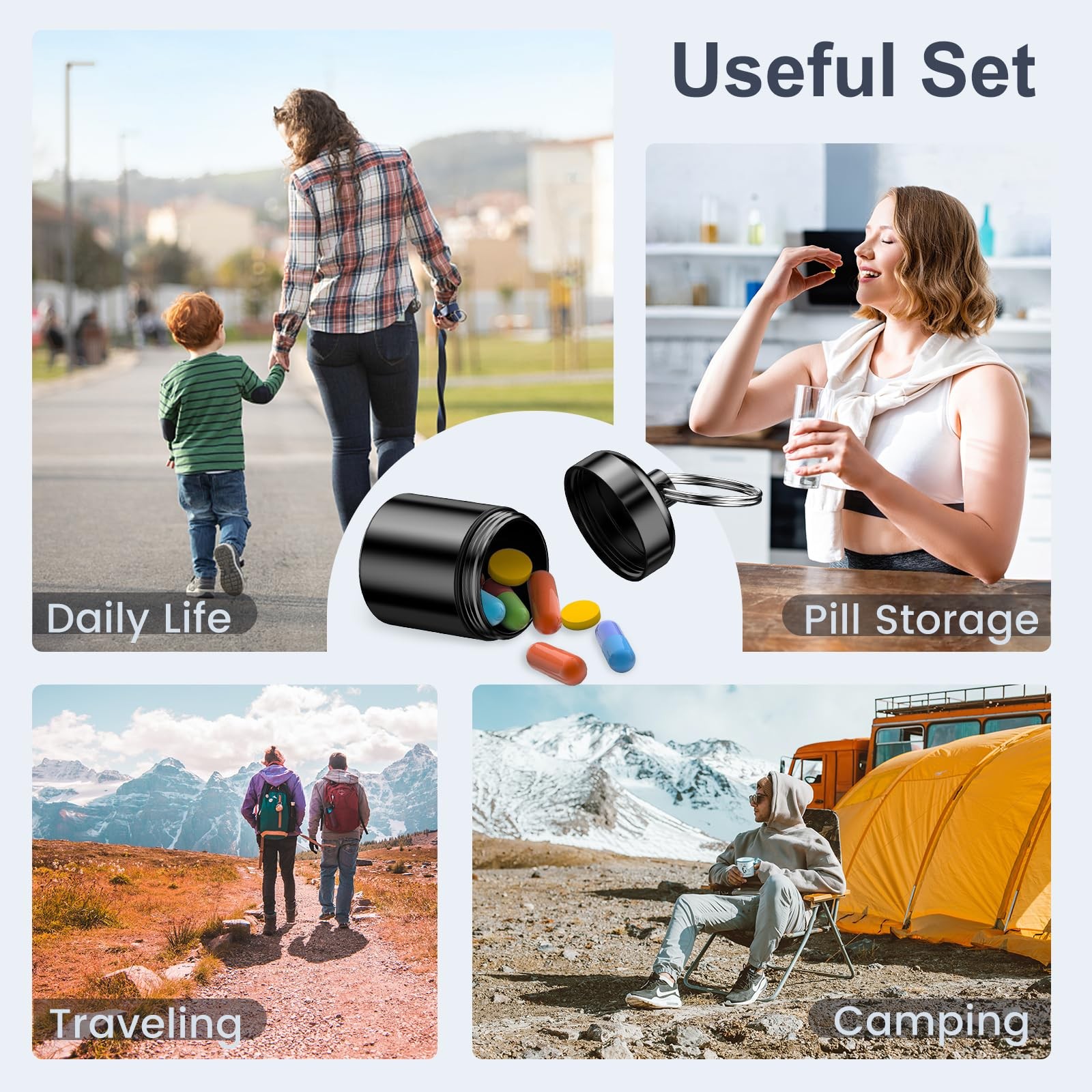 как выглядит 4 Pack Mini Pills Case Small Pill Holder Keychain for Purse - Portable Travel... фото