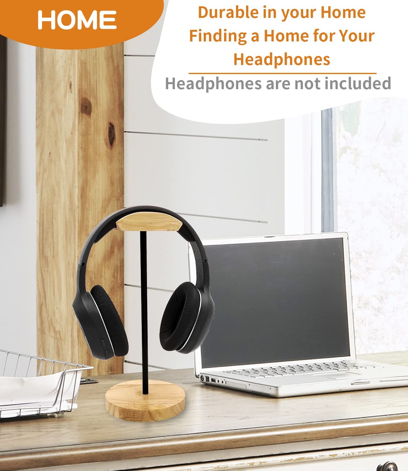 Headphone Stand Nature Wood Aluminum Headset Hanger Mount Hook Gaming Holde...