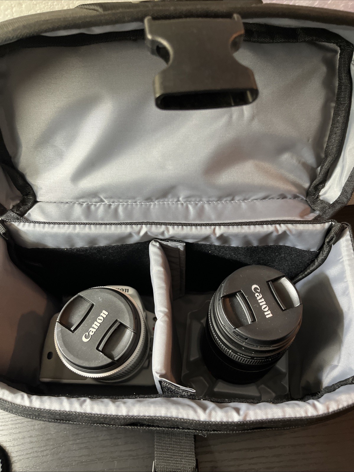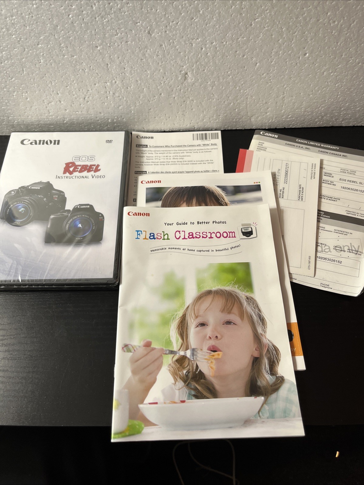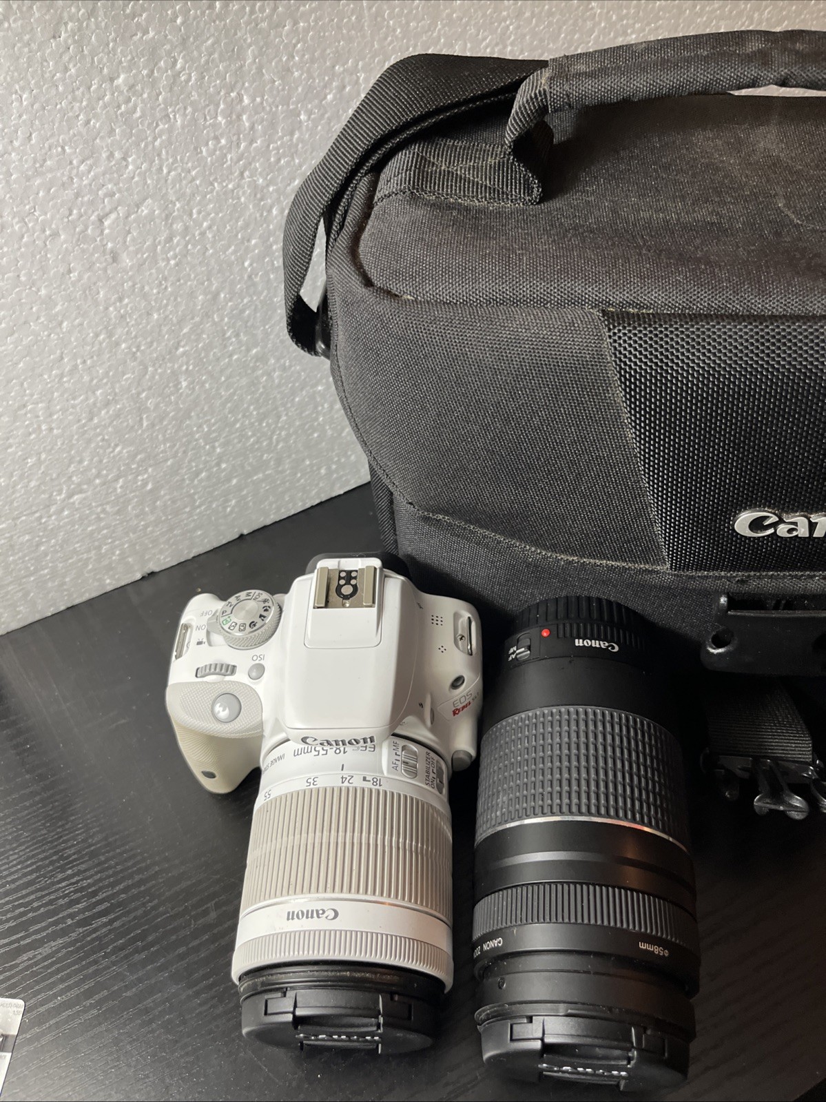 как выглядит White Canon EOS REBEL SL1 W/ EFS 18-55mm And 75-300mm Canon Bag And Manuels CD фото