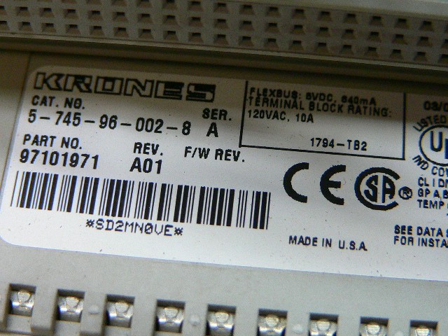 Krones 5-745-96-002-8 /A Flex I/O Terminal Base 2-Wire Screw Cage Clamp