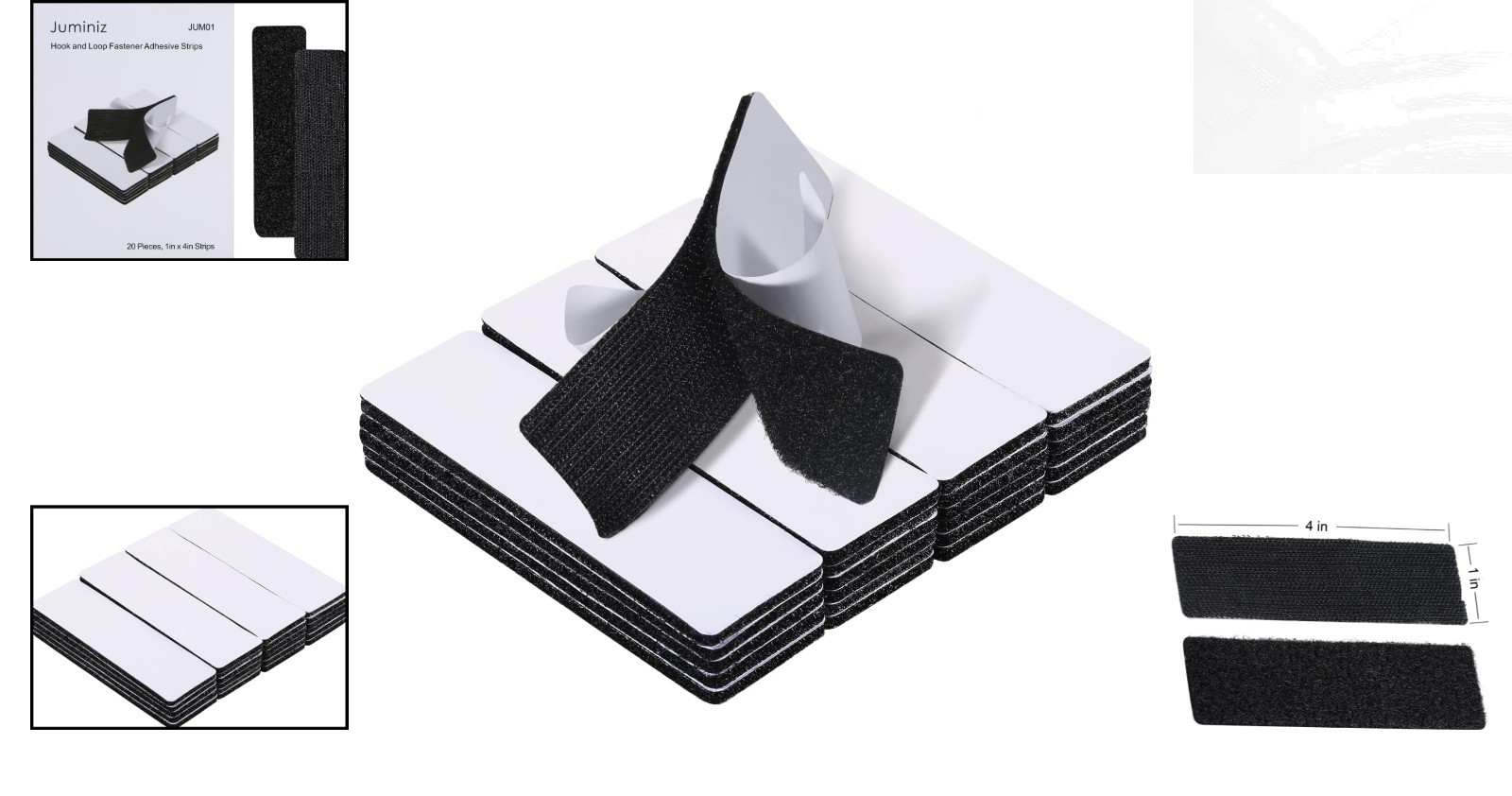 20 Sets Heavy Duty Hook Loop Adhesive Strips 1x4 Black Sticky Back Fastener