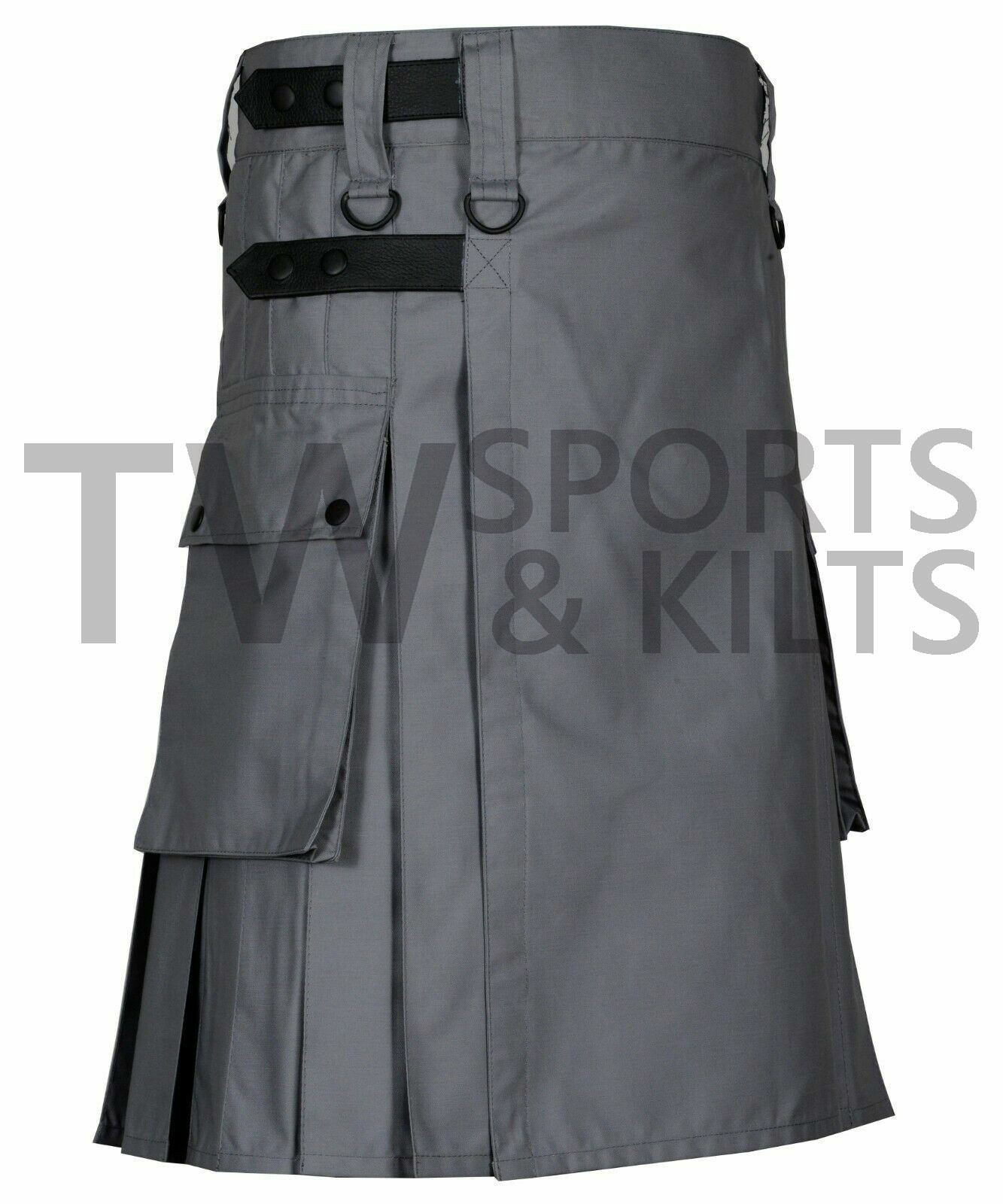 Men's Utility Kilt Made Of Cotton Cloth With Two Side Pockets Leather Straps
