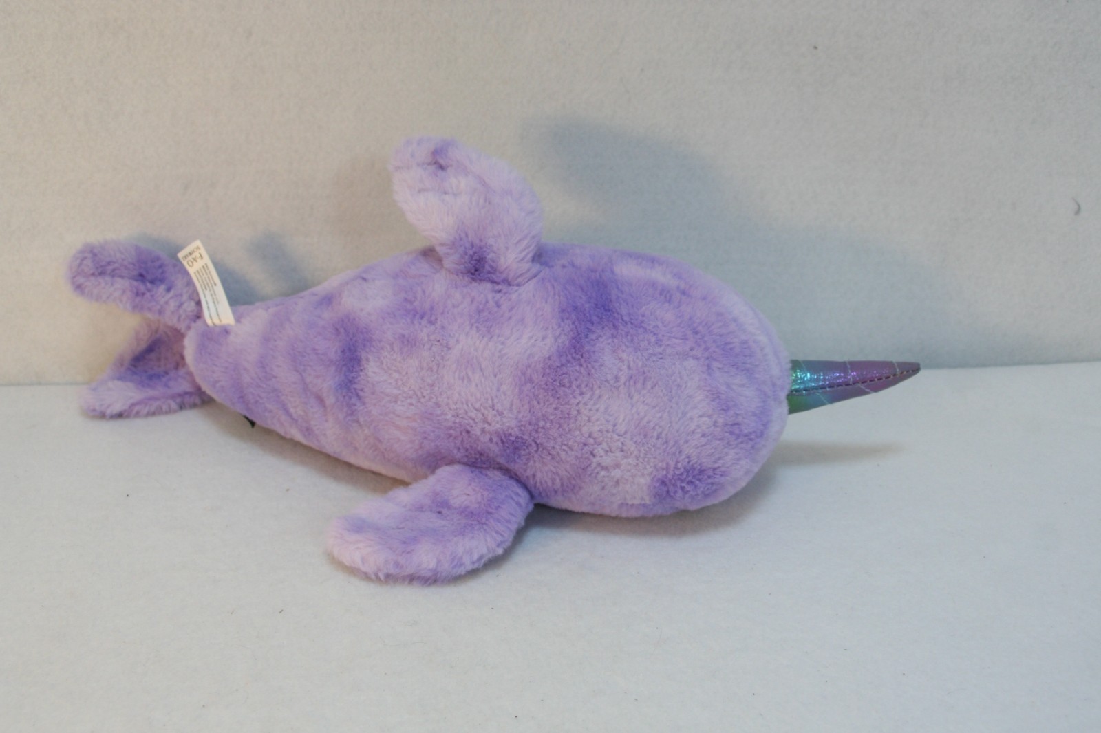 как выглядит FAO Schwarz Glow Brights Purple Narwhal Plush Stuffed Animal Toy Sparkly Horn фото