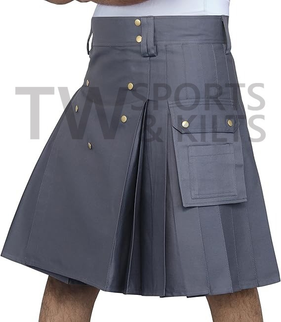 Men's Grey Utility Kilt Made Of Cotton Material Two Side Pockets Front Button