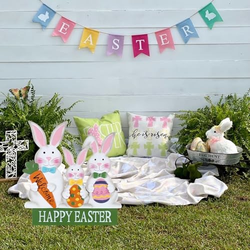 3 Metal Bunny Decorative Garden Stakes for Easter Decor, Grey, Outdoor
