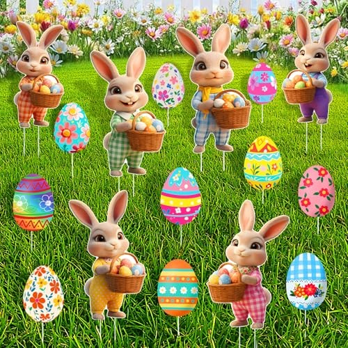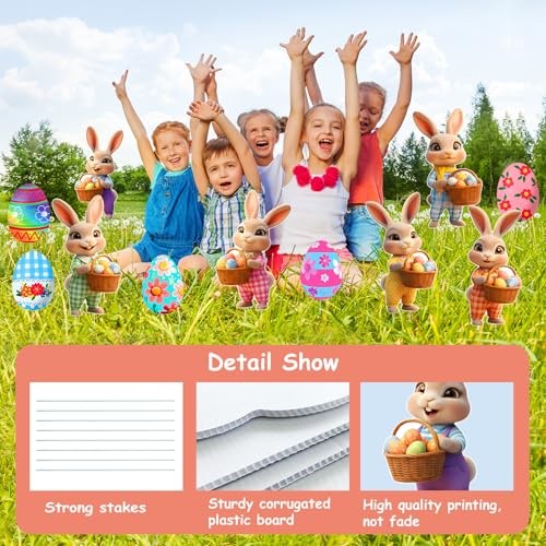 Included Components: 10 Easter egg yard signs, 32 Stakes, 6 Easter bunny yard signs
