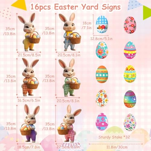 16PCS Easter Yard Outdoor Decorations- Easter Bunny Eggs Yard Signs Decoration