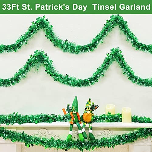 33 Ft by 4.3 St. Patrick's Day Tinsel Garland Decoration with Shamrocks Green