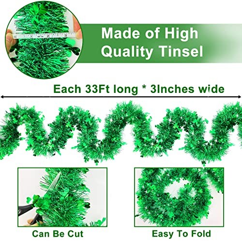 Included Components: 33 Feet Shamrock Tinsel Garland