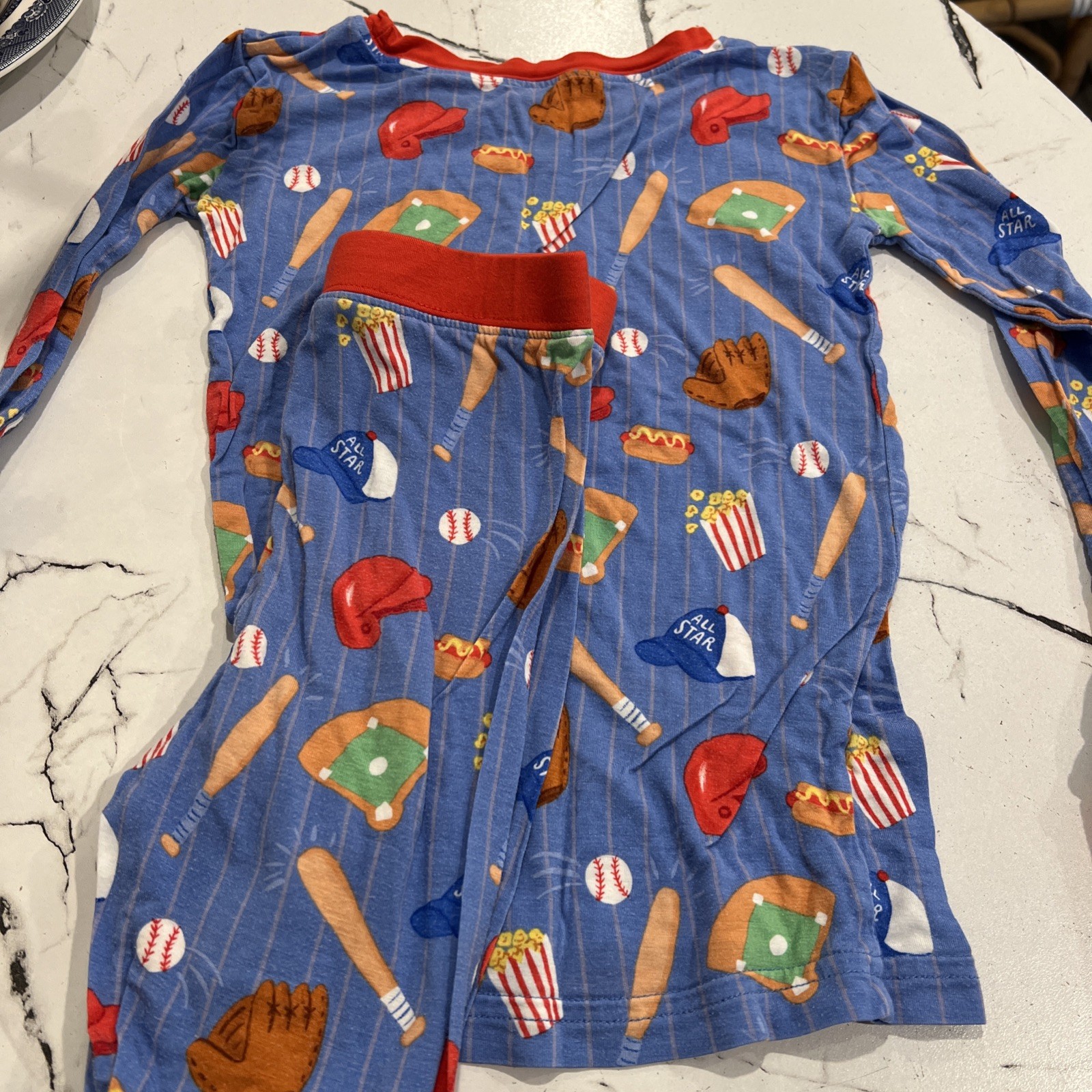 как выглядит Little Sleepies All Stars Blue and Red Baseball Cotton Pajama Set 5/6 фото