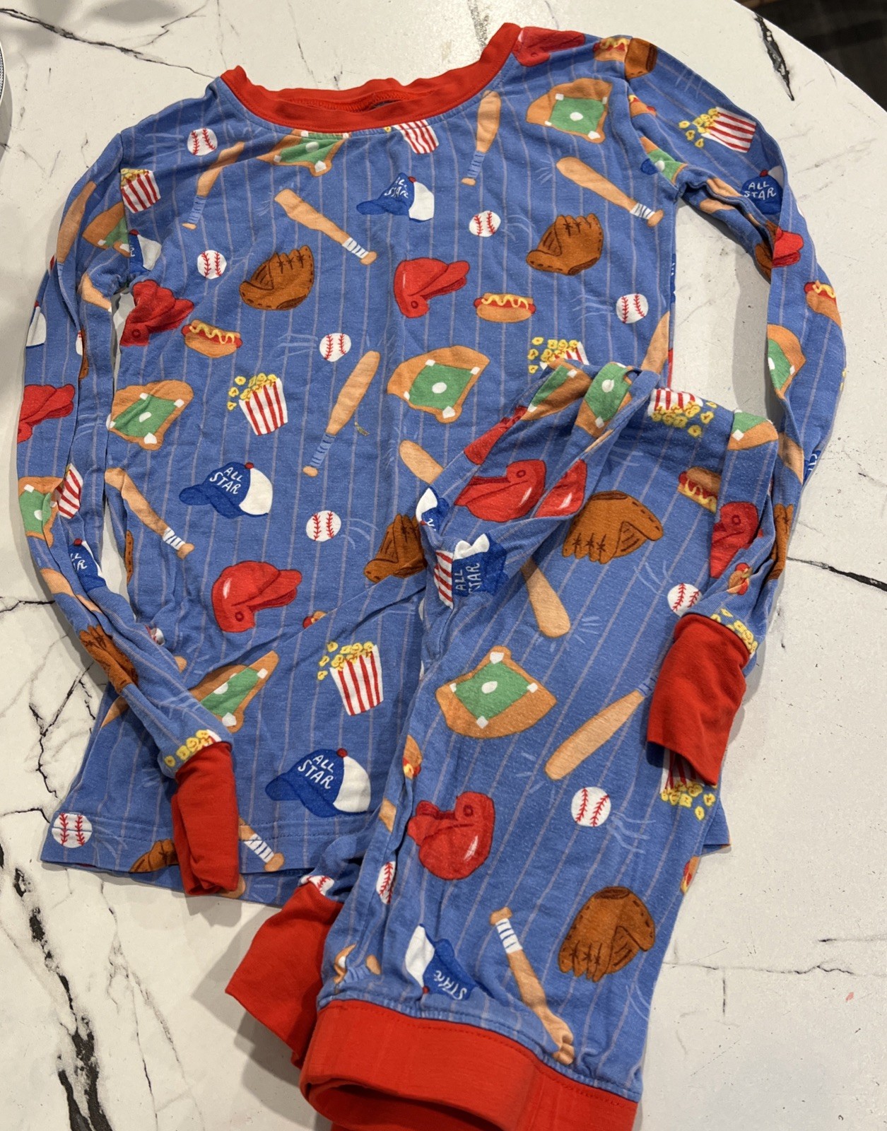 Little Sleepies All Stars Blue and Red Baseball Cotton Pajama Set 5/6